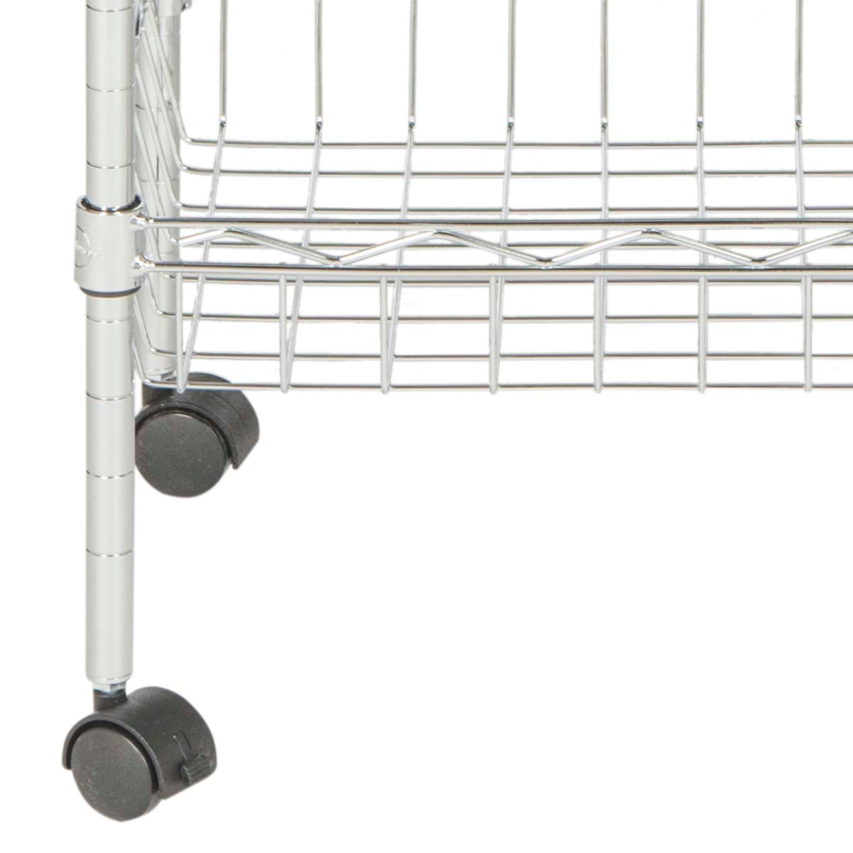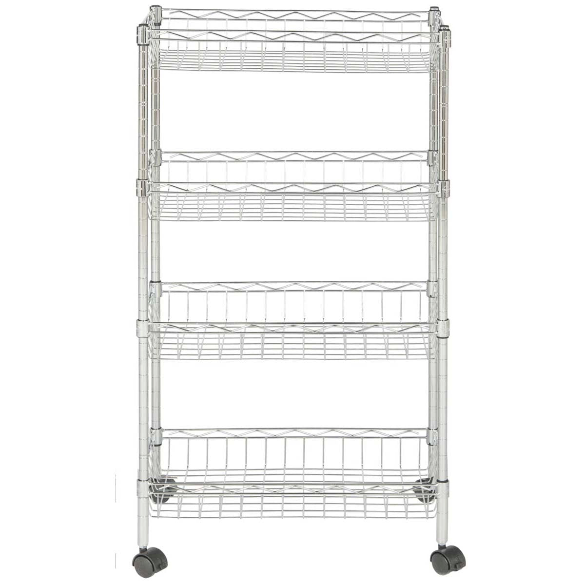 With four tiers, the Mario 4 Tier Basket Rack is a modern storage marvel. Its layers of capacious basket style storage allow contents to stay in place as favorite items are wheeled from room to room. Use for crafting, kitchen items or a modern closet.
