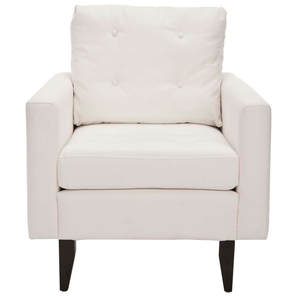 Mid Century style meets contemporary comforts in the sophisticated Caleb Club Chair. Its plush button tufted cushions are paired with natural white cotton fabric and java finished birch wood legs to enhance its welcoming appeal. Caleb perfectly complements both modern and classically styled rooms.