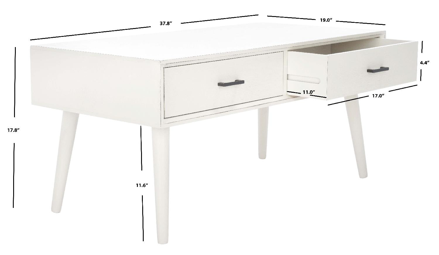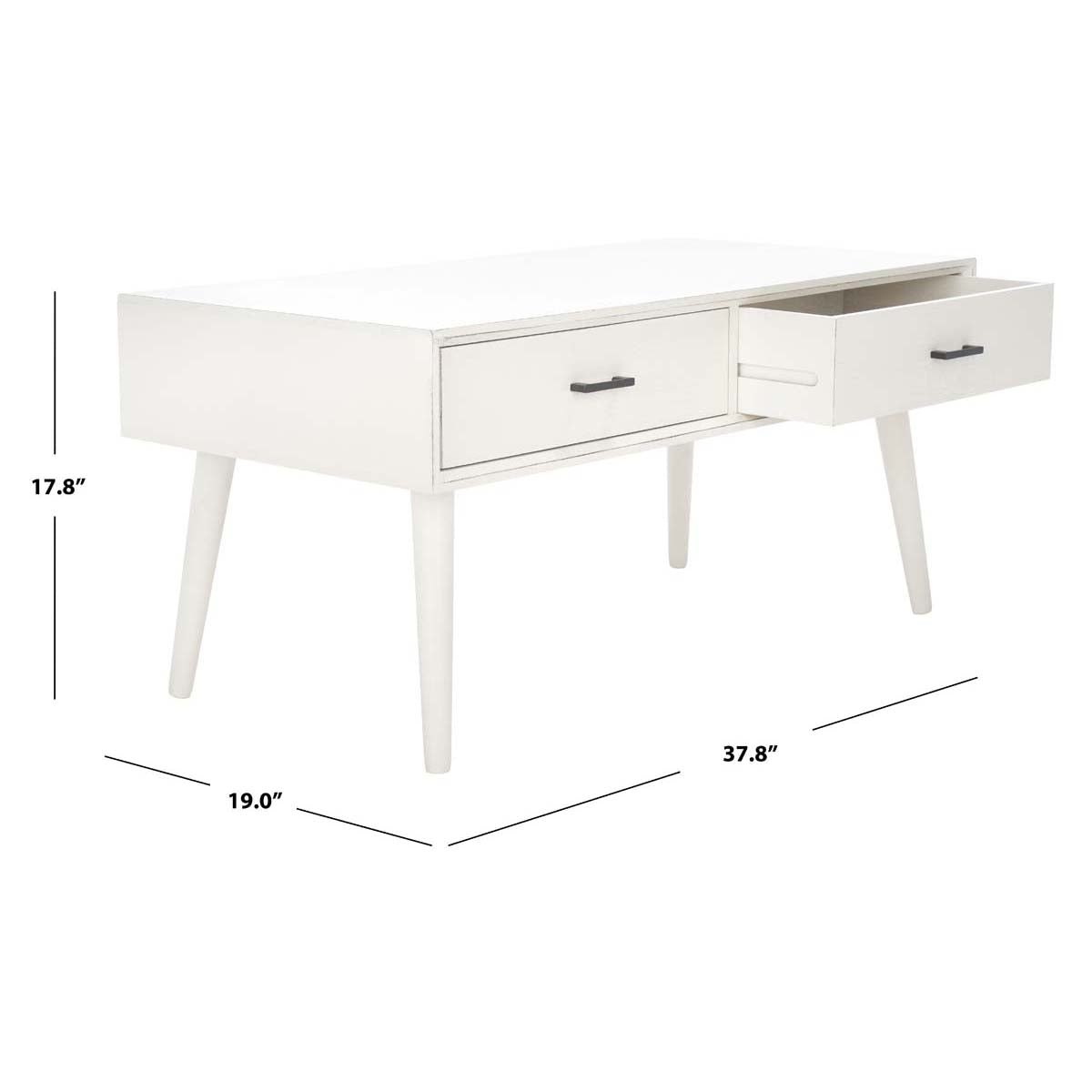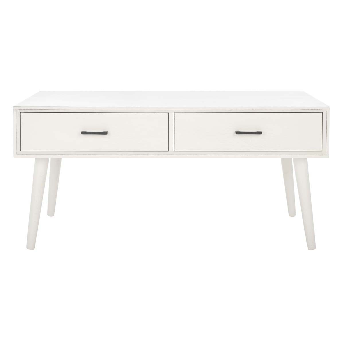 Safavieh Mozart Mid Century 2 Drawer Coffee Table-Distressed White