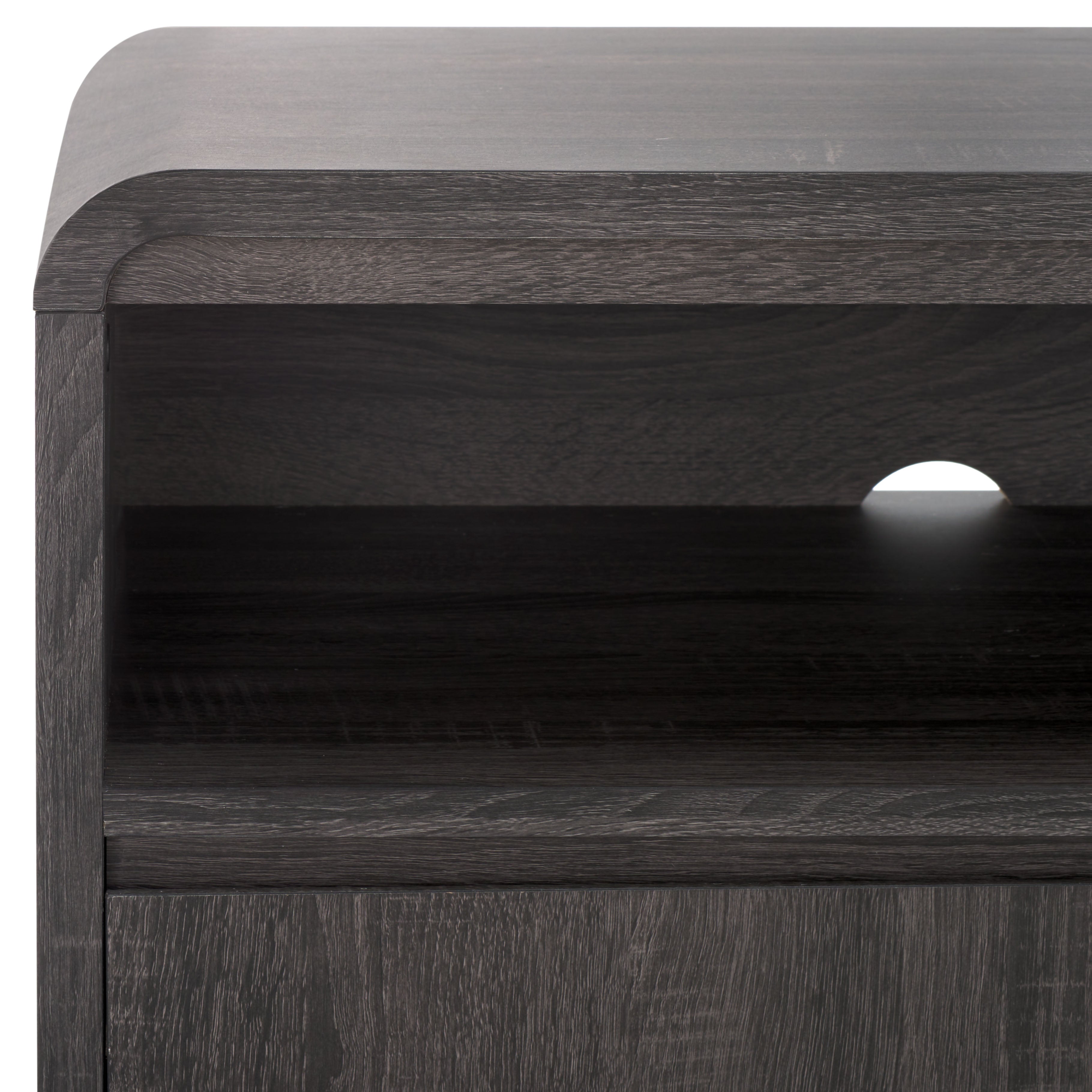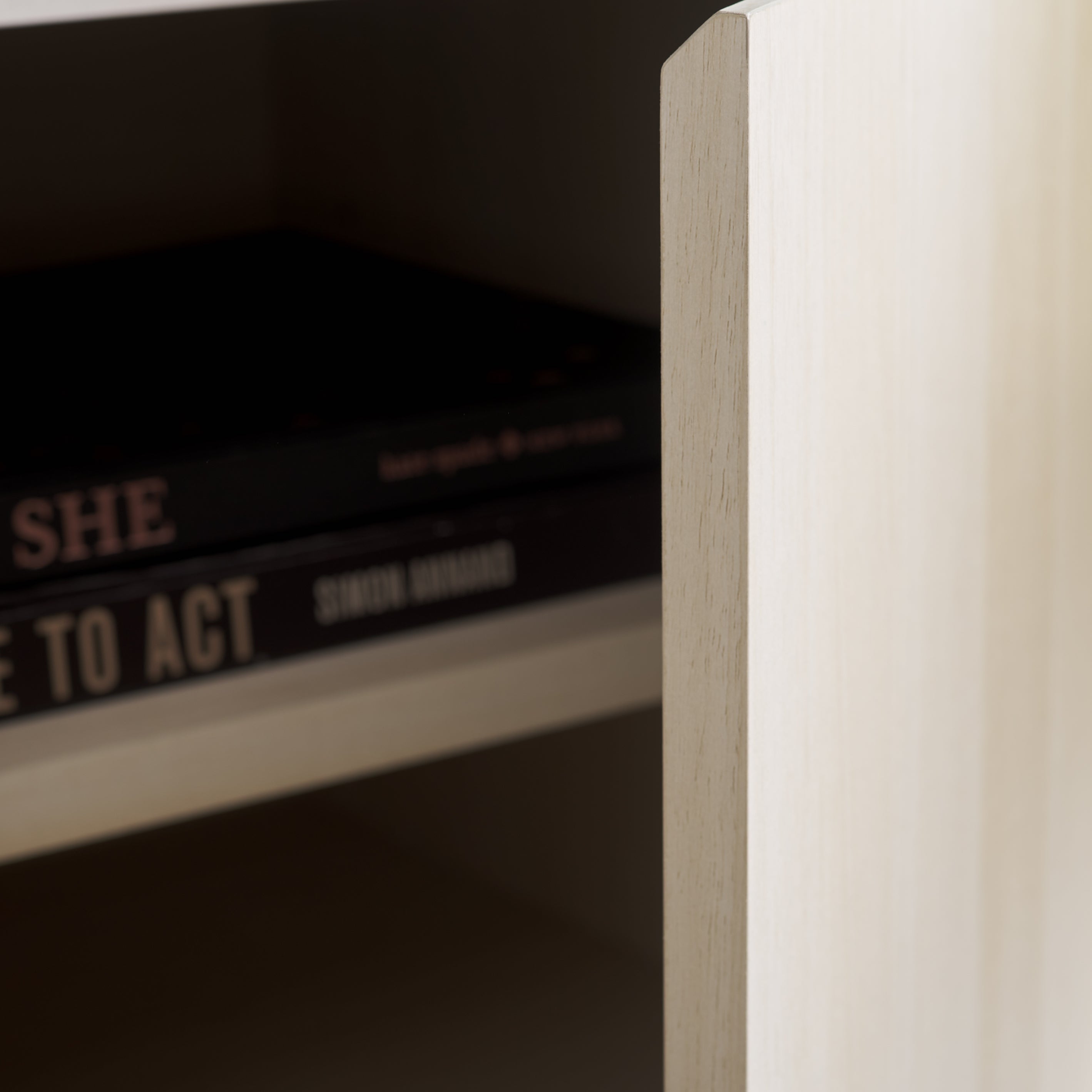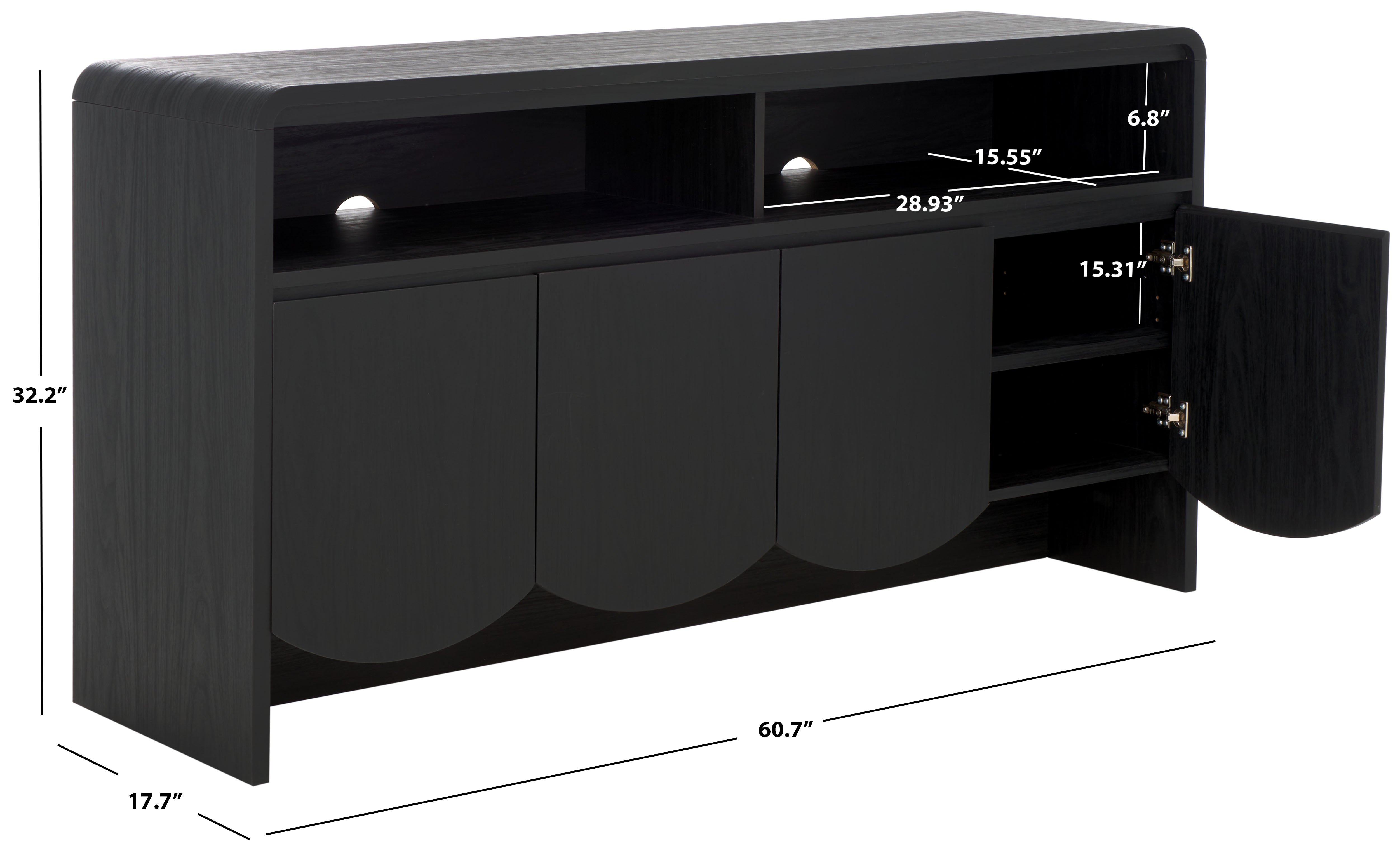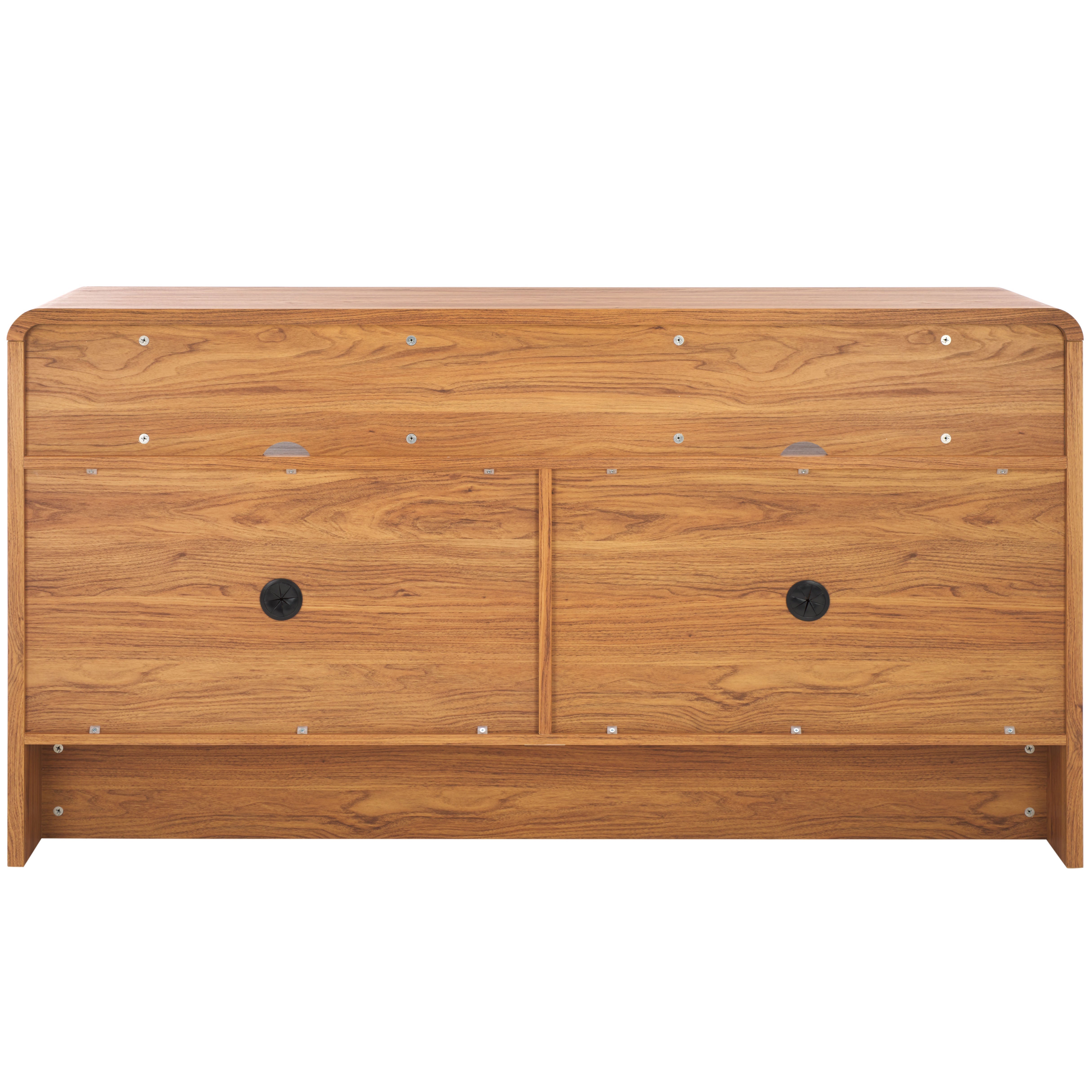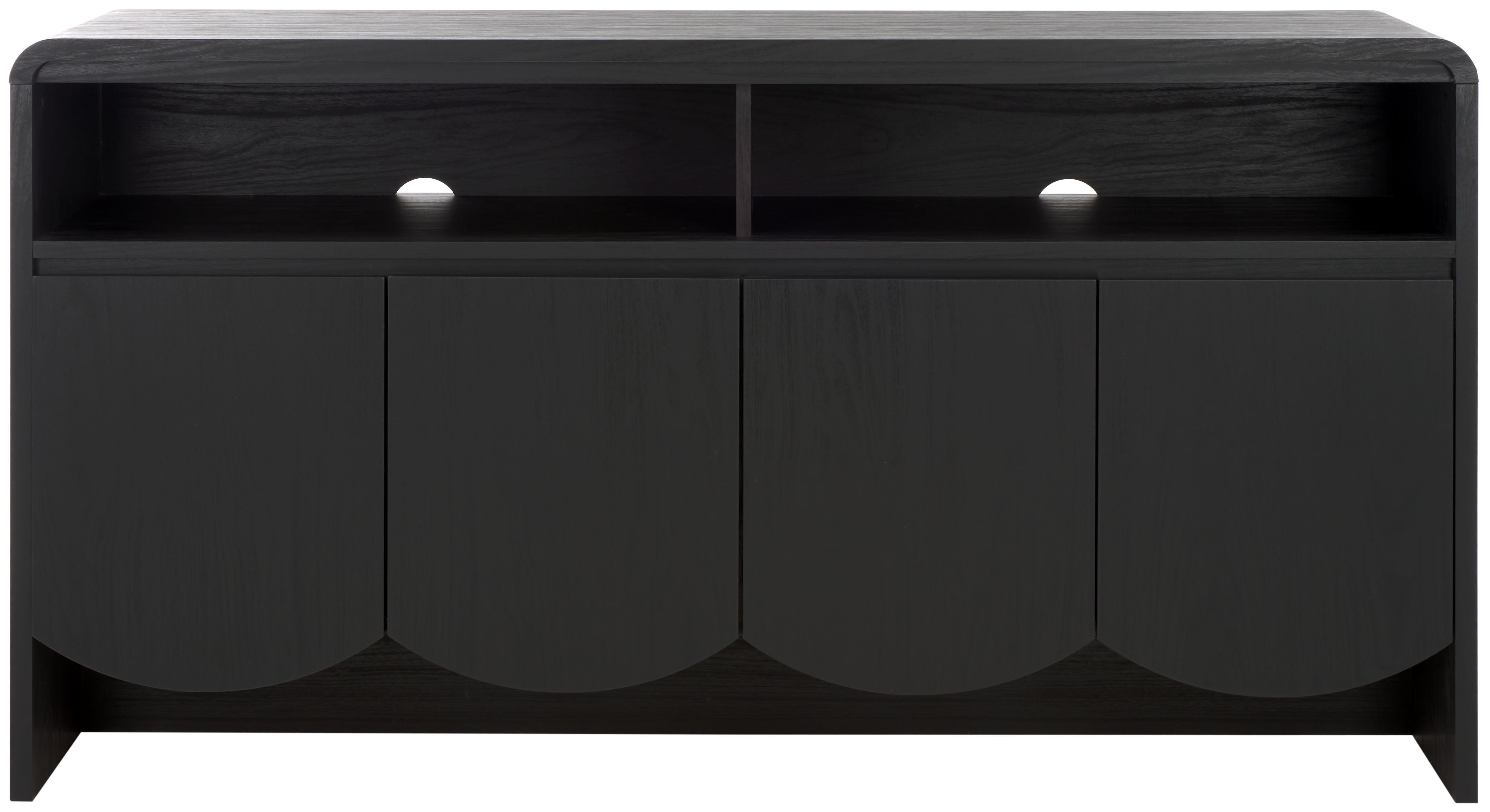 Make a chic and elegant statement with our Narine media stand. The streamlined media unit is defined by elegant proportions and charming curves. The clean, rounded edges lend a sleek and stately presence to our media unit. Its flat-front cabinets stand out with sleek and eye-catching curves at the bottom. Showcasing the rich grains of wood, our sideboard adds endless charm and character. It features open shelves and four roomy cabinets to offer a versatile storage unit that works well in each room.<