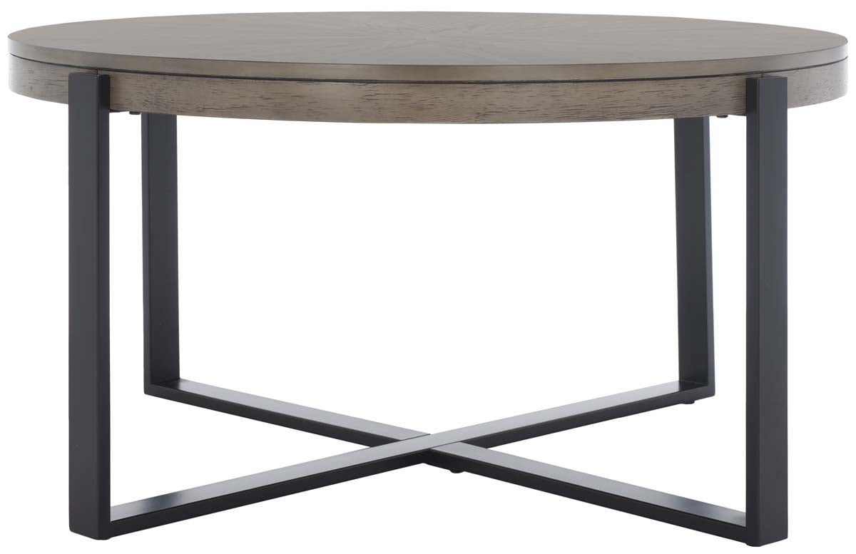 Safavieh Navya Round Coffee Table - Light Grey Top / Black Legs