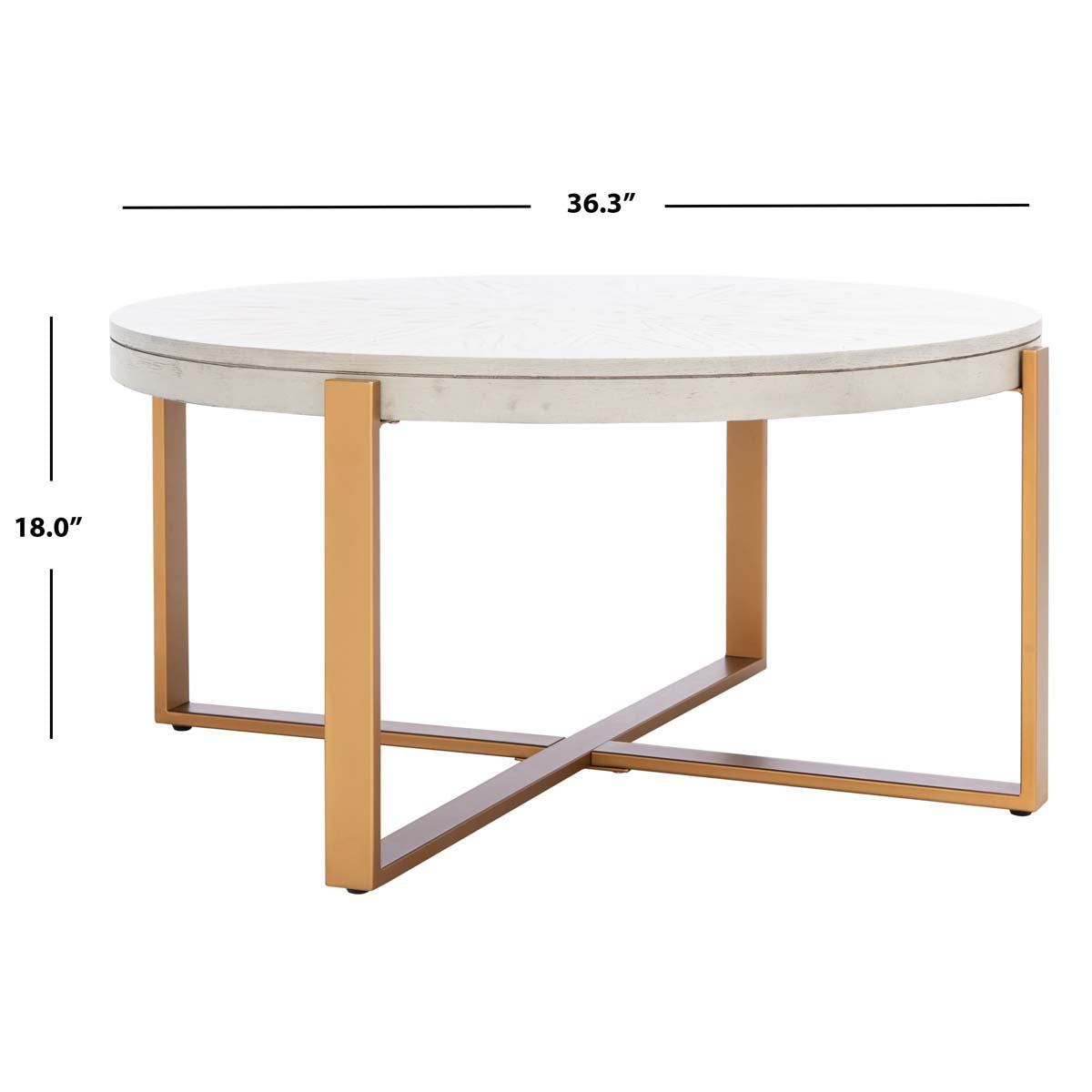 Safavieh Navya Round Coffee Table - White Washed / Gold