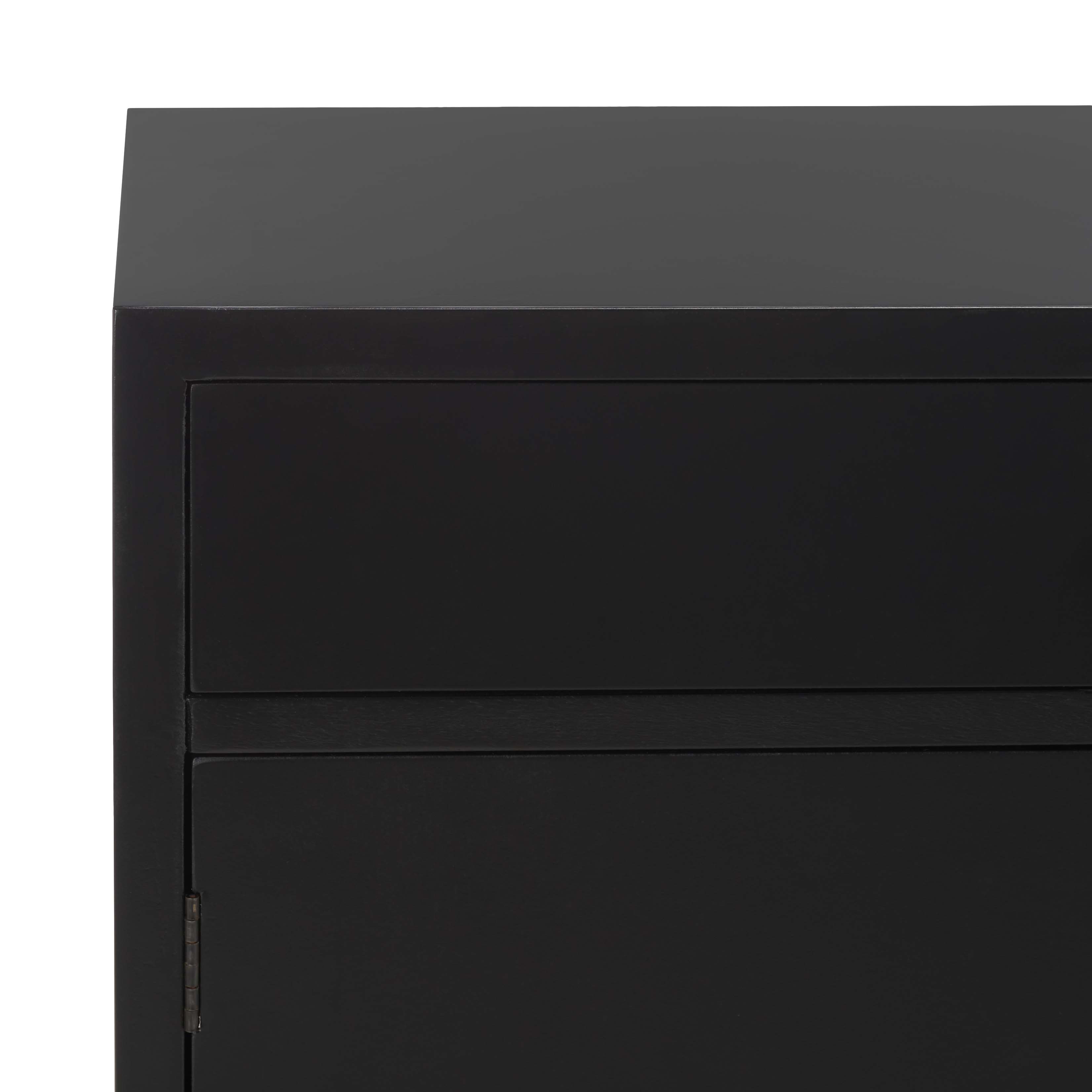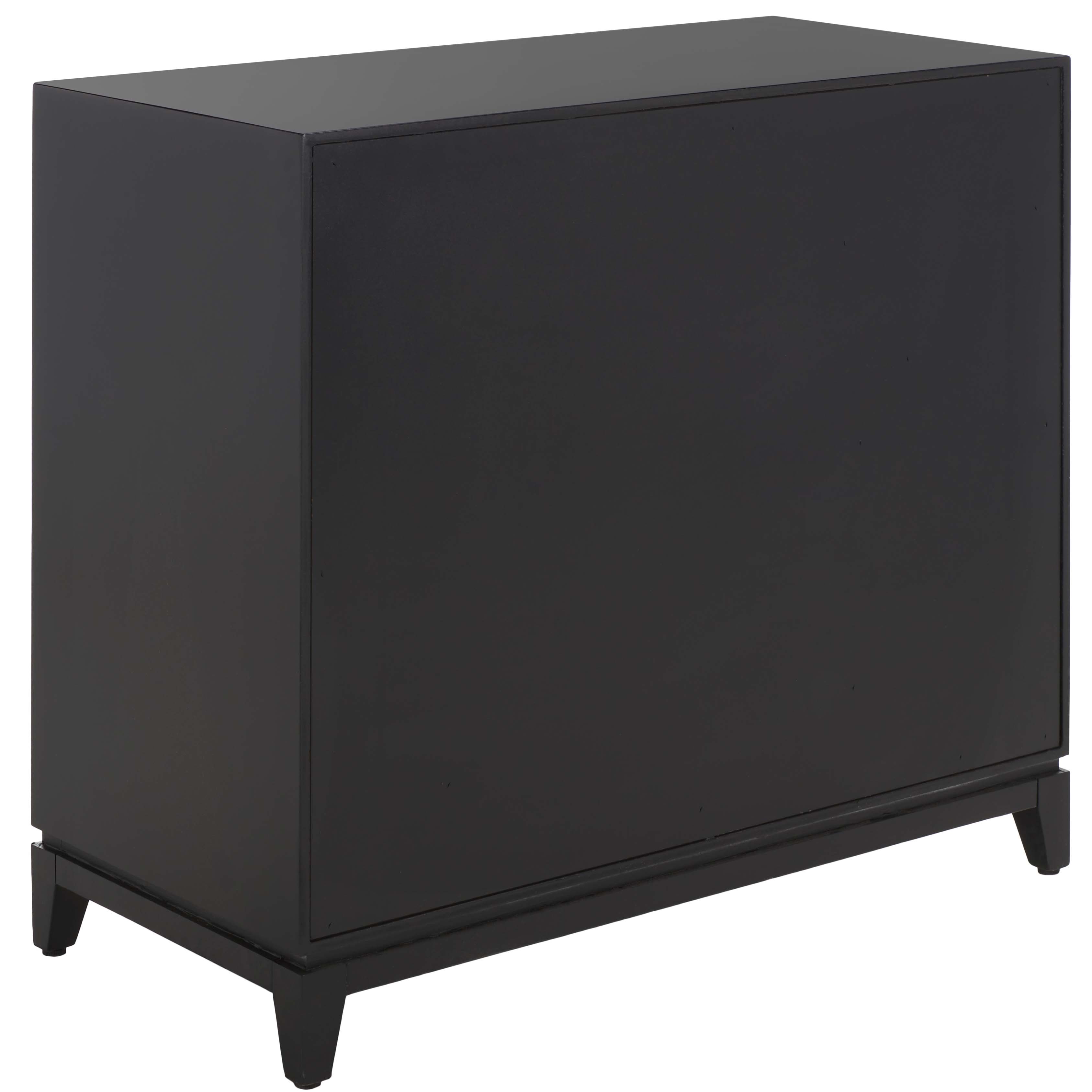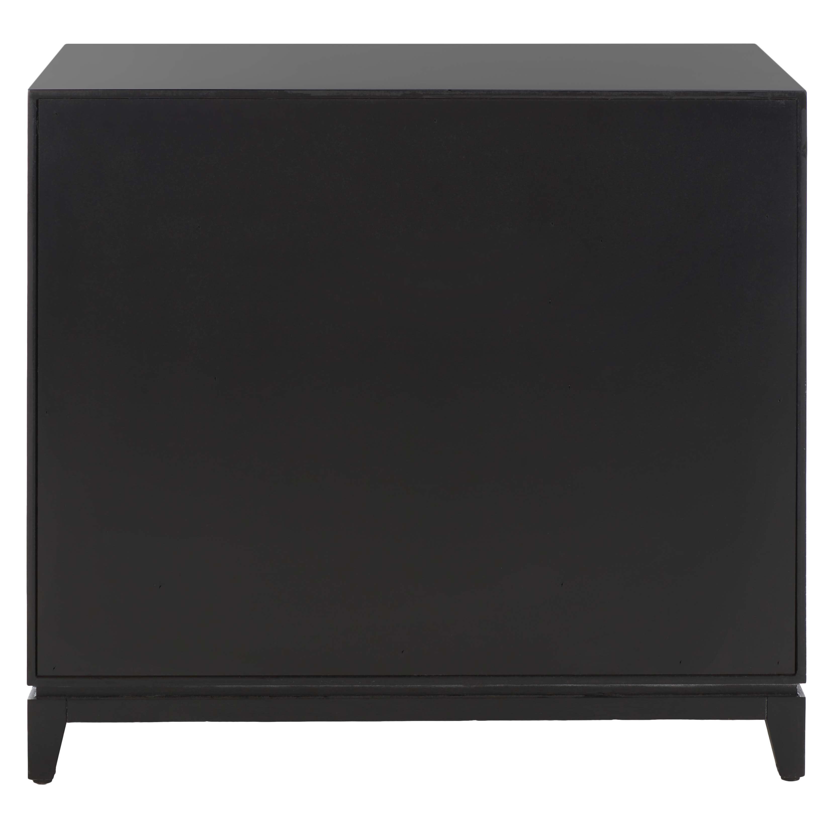 Designed for maximum versatility, this 2 door chest is ideal for living room storage or perfect as a nightstand in the bedroom. Its black and brass finishes blend beautifully with any d��cor. Designers love how it hides clutter and unsightly accessories.