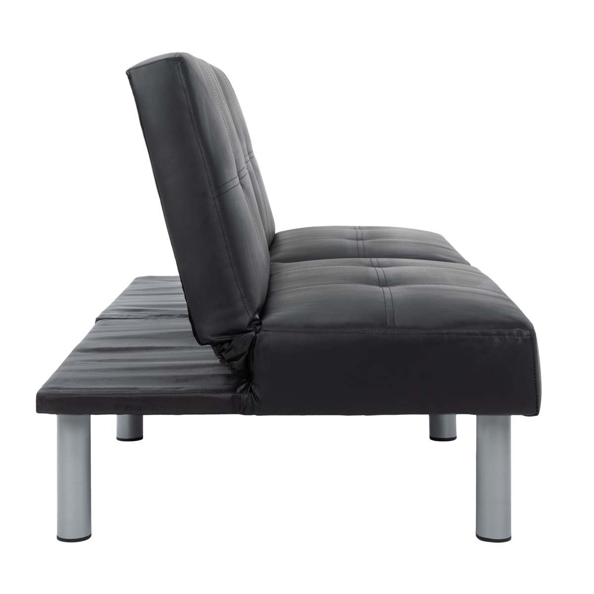 A blend of fashion and function, this stylish foldable futon bed is like a little black dress for any living room or bedroom. Designed with clean lines, posh tufts on its sleek and durable PVC upholstery and natural wood legs, it?? a new designer favorite.