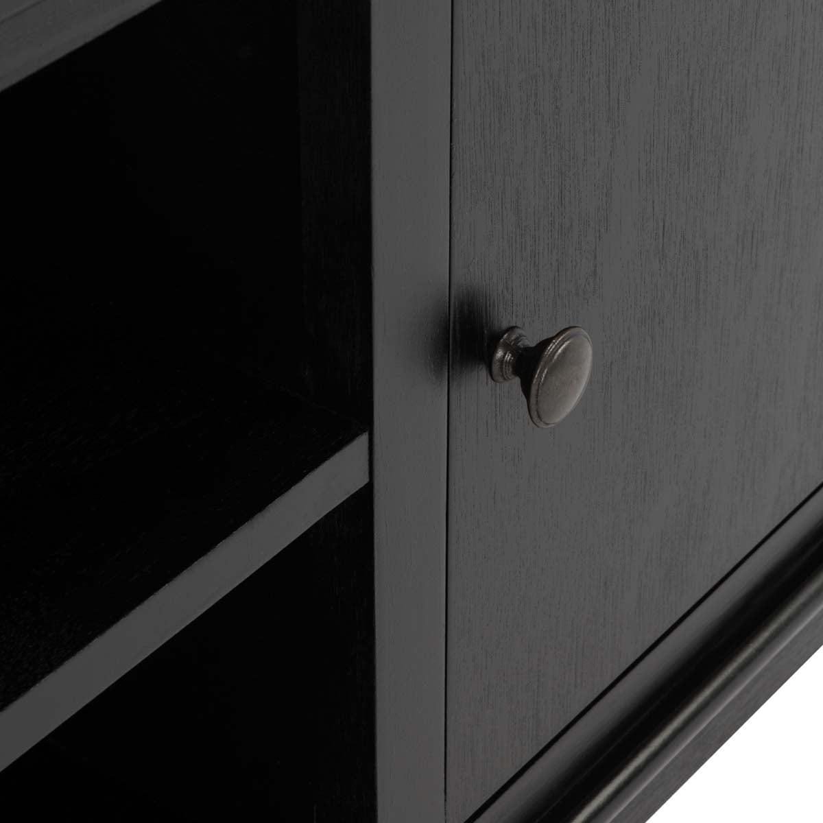 This Ozark Media Stand emanates farmhouse charm in any living room or entertainment space, making it a new country styled classic. Ozark???s two open shelves are perfect for electronics or consoles, and its two doors discretely store your vast collection of favorite flicks. Designers love its sleek black finish.