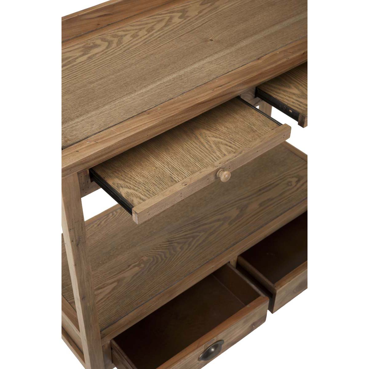 Marrying the functionality of a secretary desk with that of a traditional console, this Peter Console is a portrait of country cottage chic. Peter's pull out writing surfaces, lower shelf, and two bottom drawers prove it a master of both form and function, while a weathered oak finish makes Peter absolutely timeless.