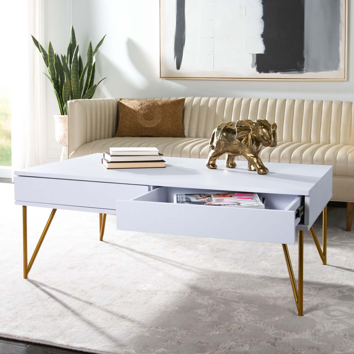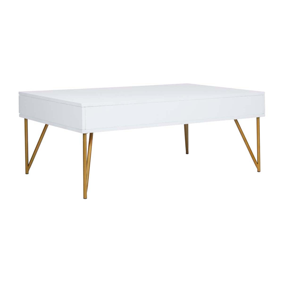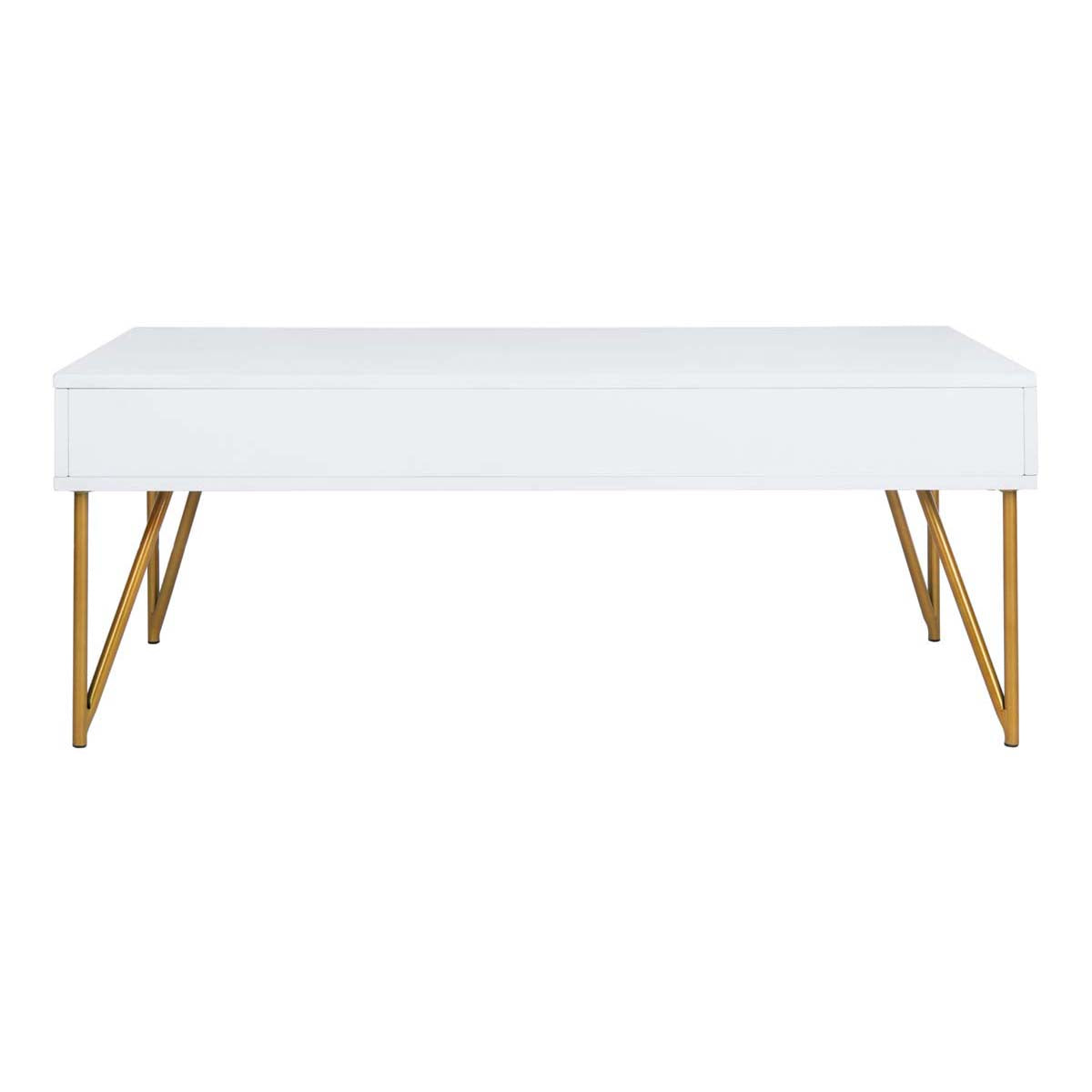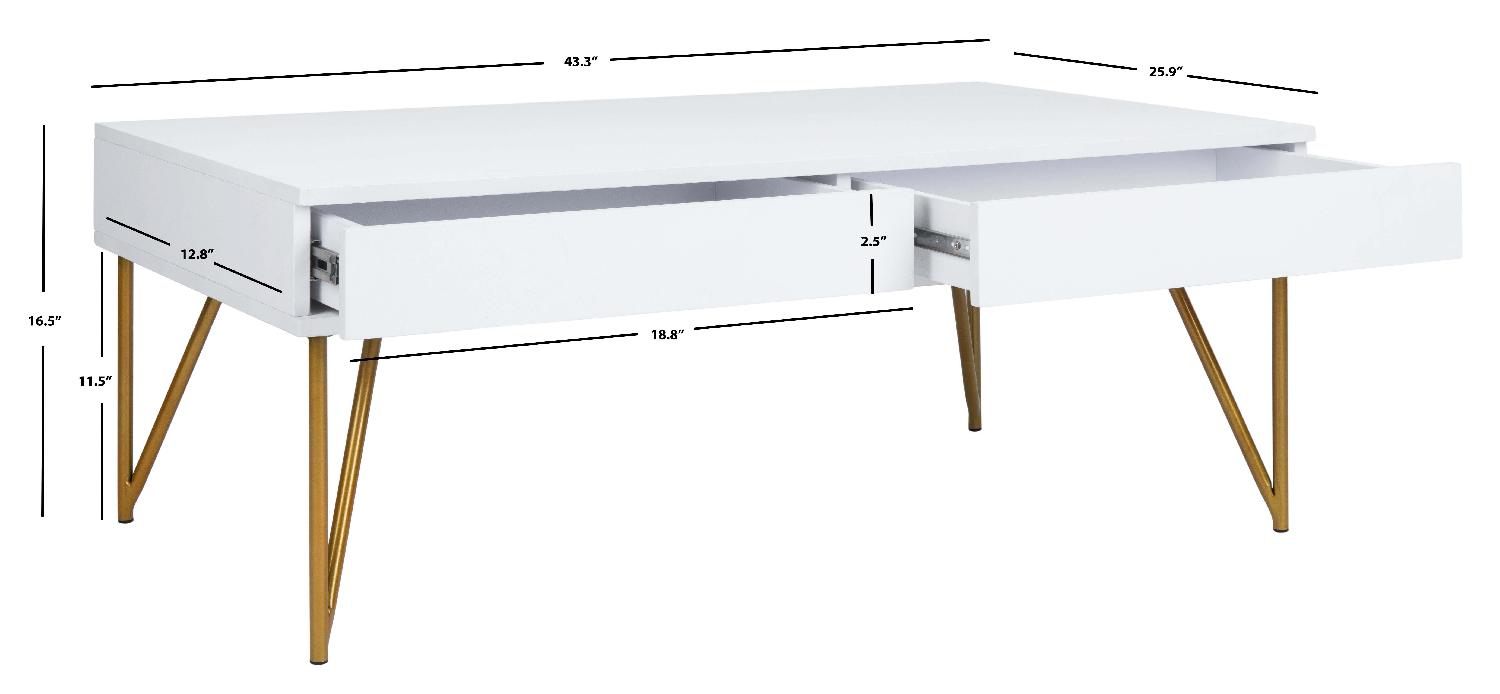 Safavieh Pine Two Drawer Coffee Table - White/Gold Iron
