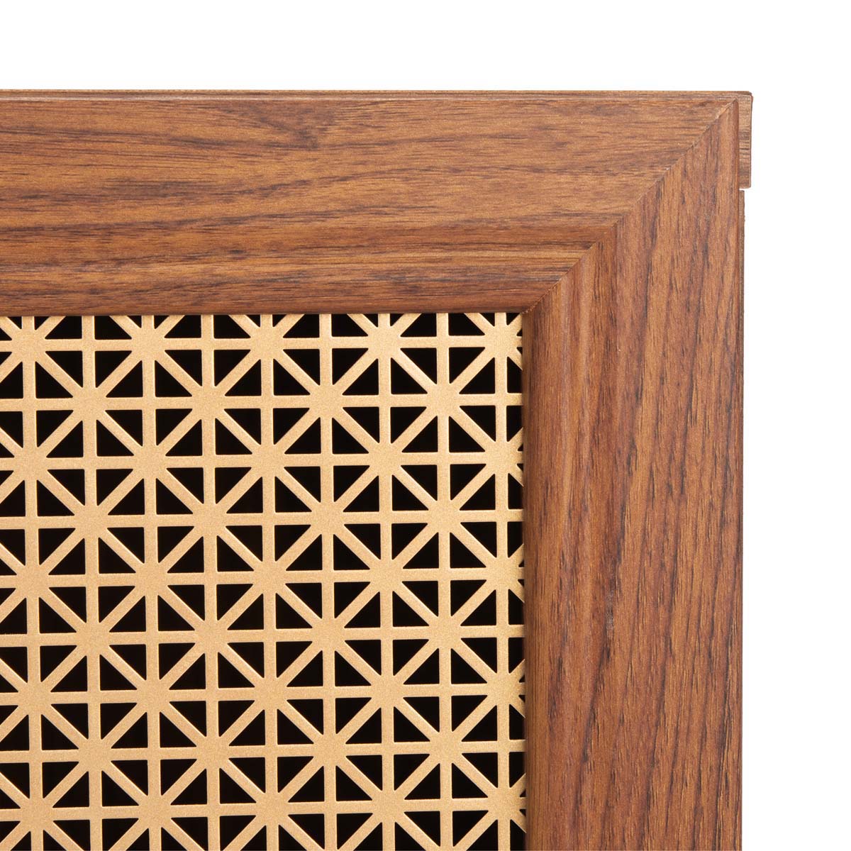 Traditional splendor meets contemporary chic in this Piran Media Stand. Piran?? four walnut finished doors are given a royal treatment with gold latticed mesh for artistic contrast that creates a dramatic decorative focal point in any entertainment area, while two shelves provide ample storage space.