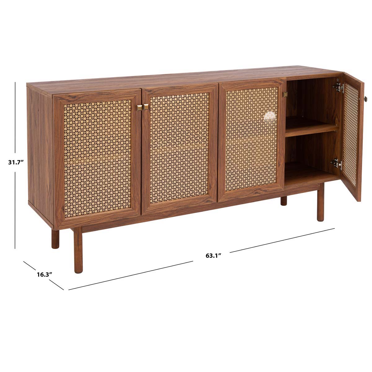 Safavieh Piran 4 Door 2 Shelf Media Stand - Walnut/Gold (Mesh)
