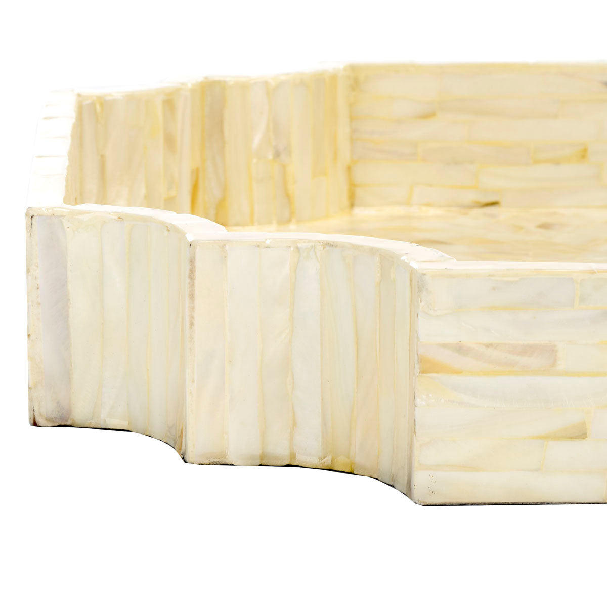Ideal for serving guests or simply a striking decorative accent accessory, this Prynne Set of Three Trays brings culture and charisma to any interior. A subtle herringbone sunburst pattern in elegant champagne mother-of-pearl makes Prynne a lavish designer's favorite.