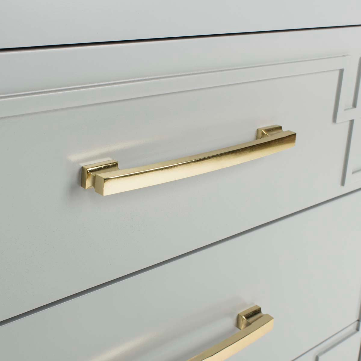Bring Chinoiserie chic glamour to any room with this stunning Raina Chest. The striking carved details and sleek gold hardware adorning its three spacious drawers make Raina absolutely breathtaking, while a glossy grey finish completes the couturier look.