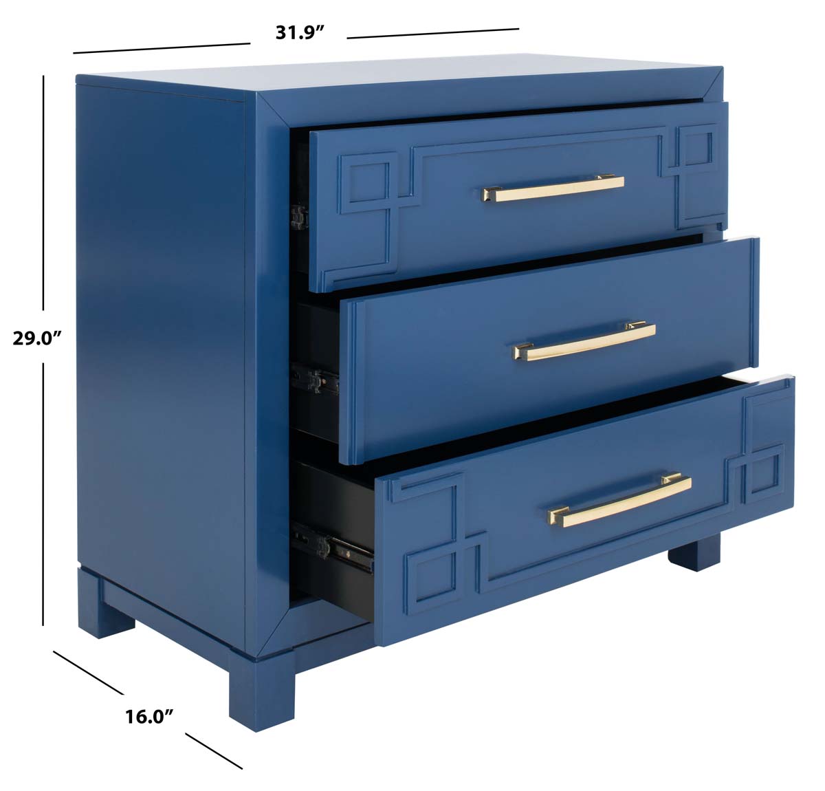Safavieh Raina 3 Drawer Chest - Lapis Blue/Gold