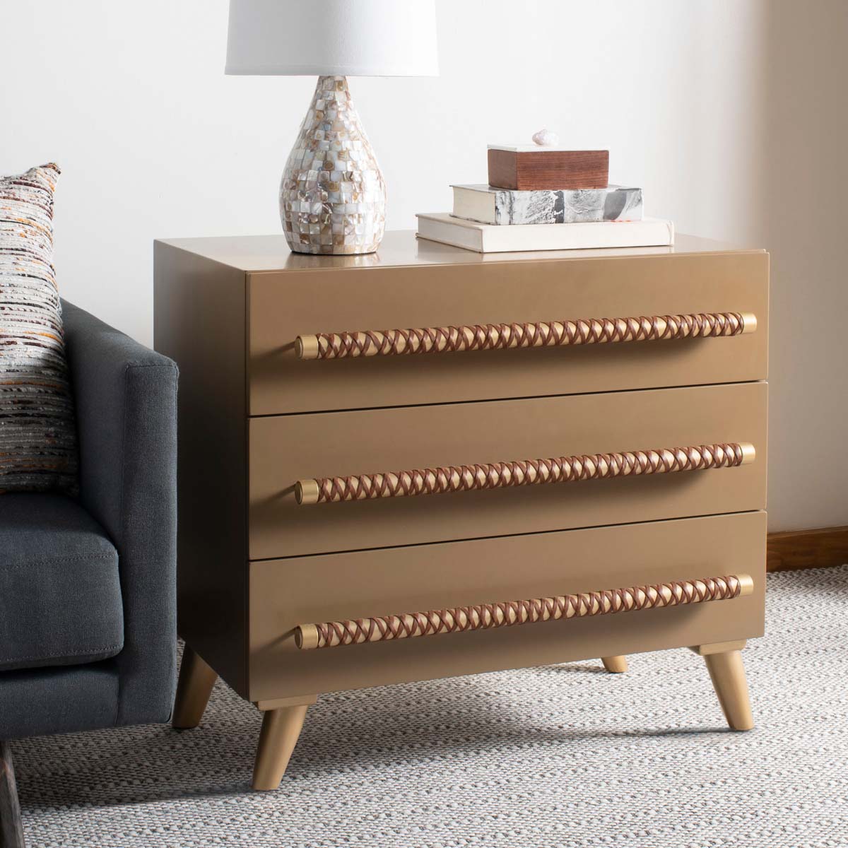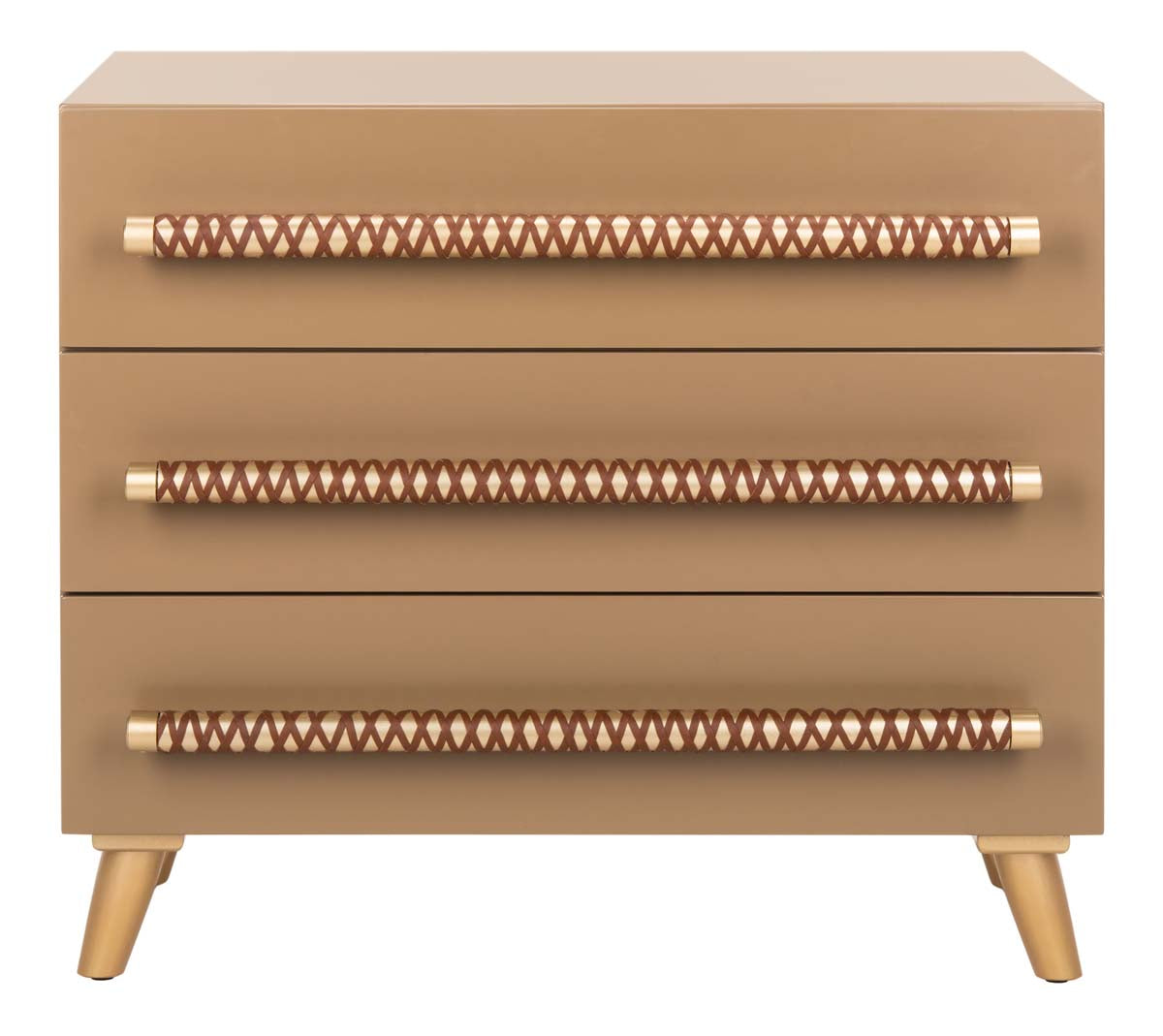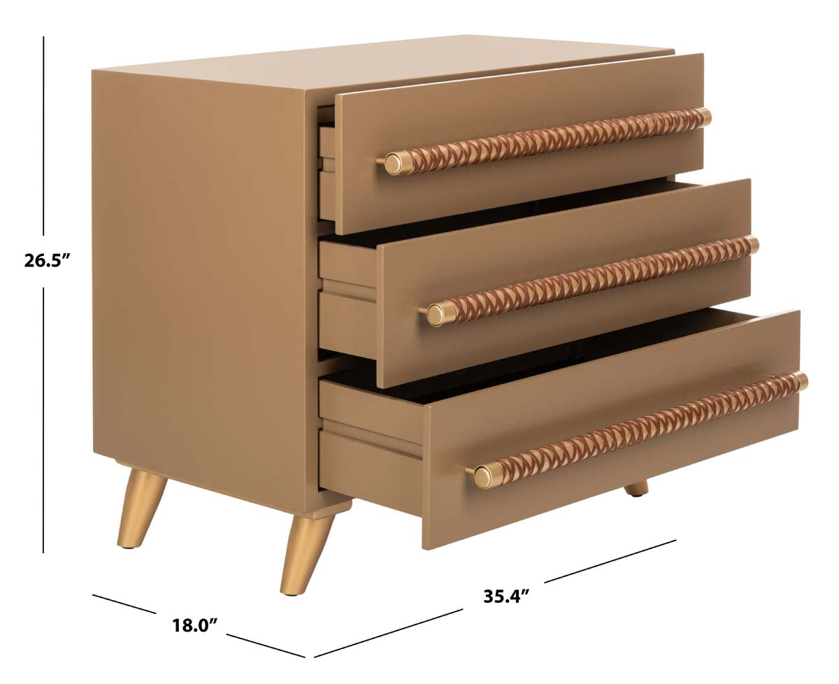 Safavieh Raquel 3 Drawer Chest - Taupe/Gold/Brown Faux Leather