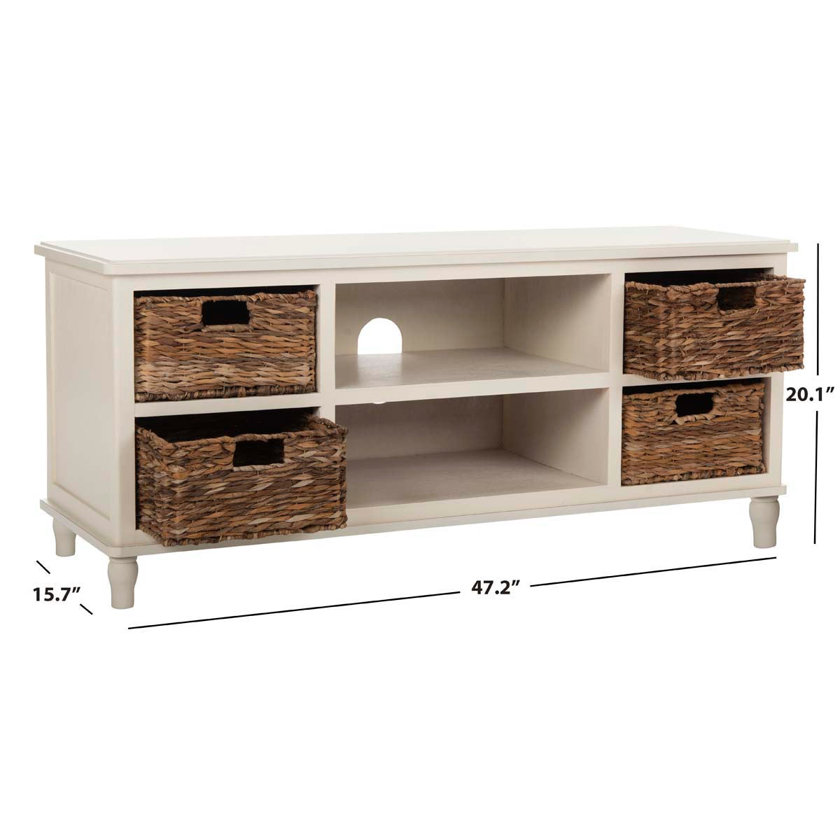 Ideal for coastal and country interiors, this Rooney TV Unit is the perfect organization solution for the den or living room. Four natural rattan baskets effortlessly store remotes and other entertainment essentials, while a distressed white finish makes Rooney absolutely timeless.