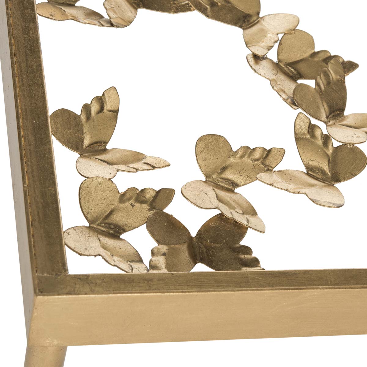 This ethereal Rosalia Butterfly Side Table was inspired by the handcrafted pieces commissioned by old Italian royalty. Decadent and timeless, this modern heirloom?? antique gold finish and fluttering sculptural detail finishes any room with a touch of regal brilliance.