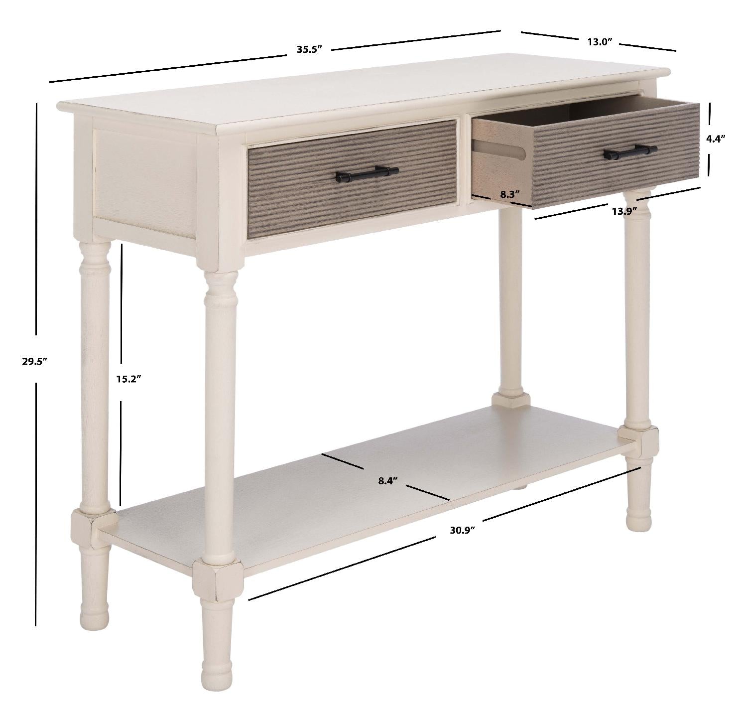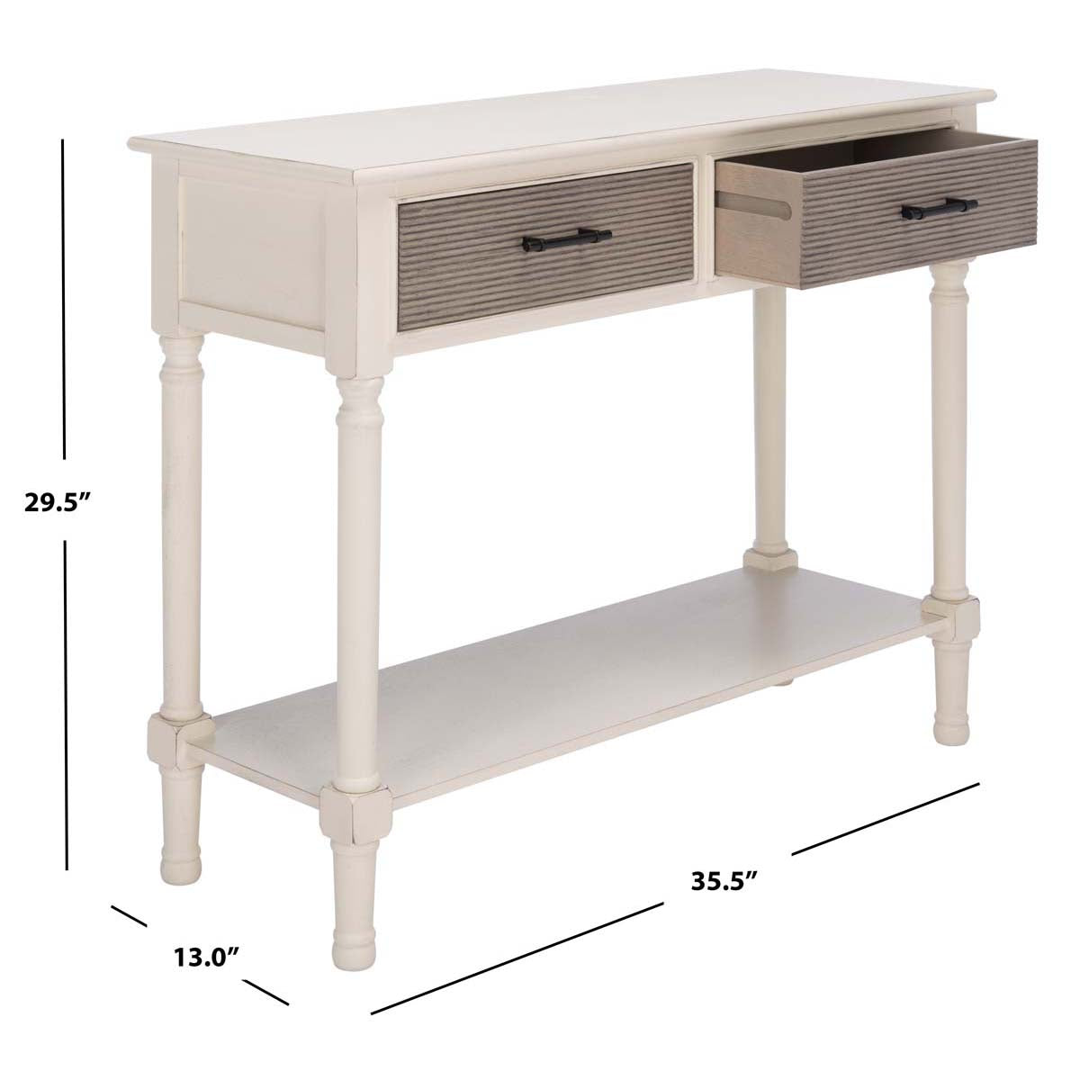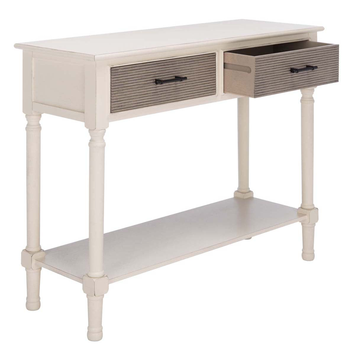 Safavieh Ryder 2Drw Console Table-Distressed White / Greige Drawers