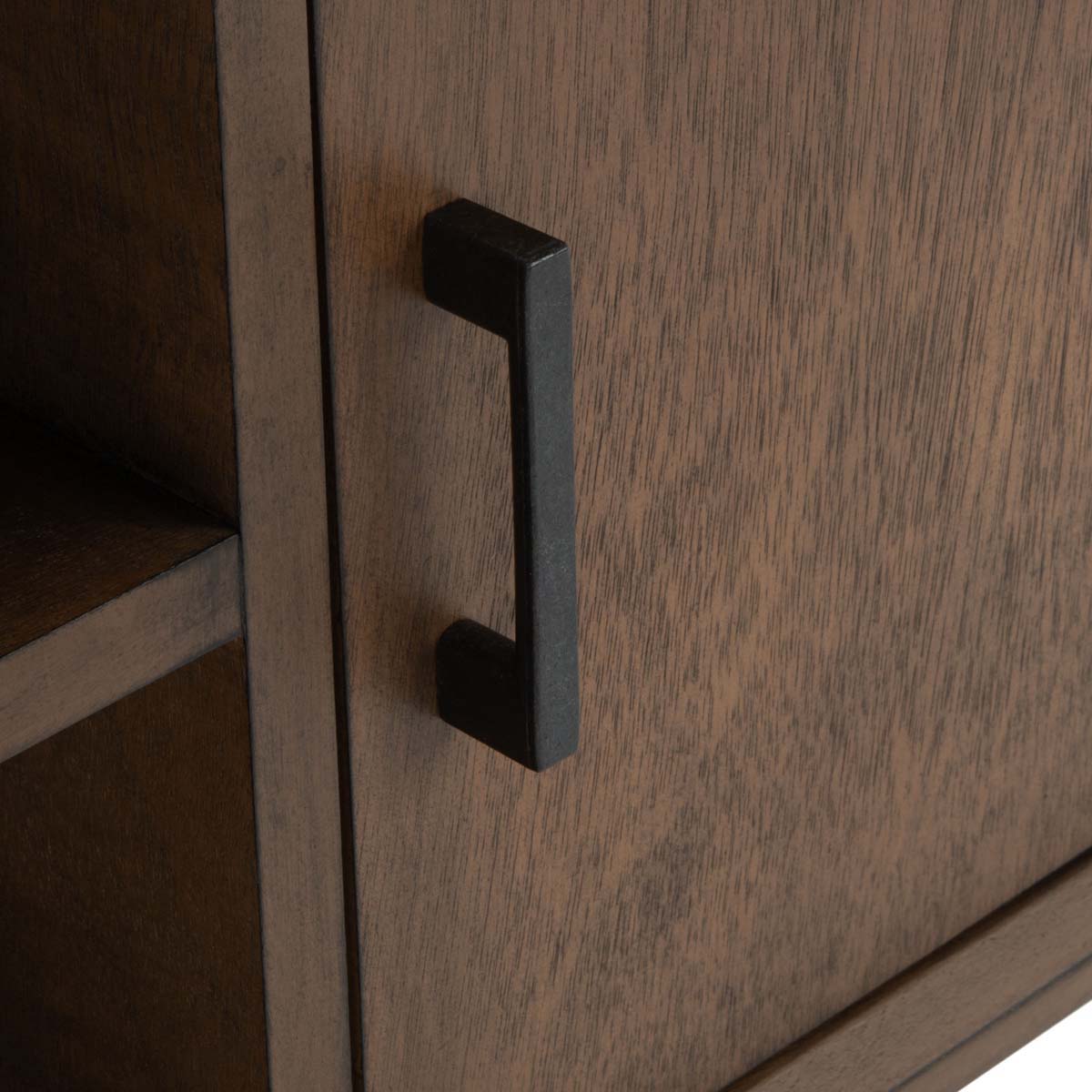 Upgrade your entertainment space in contemporary Mid Century style with this Sorrel Media Stand. A rich brown finish brings a touch of farmhouse charm to its retro inspired frame, while its open shelf and two doors provide ample space for electronics, consoles, or movies.