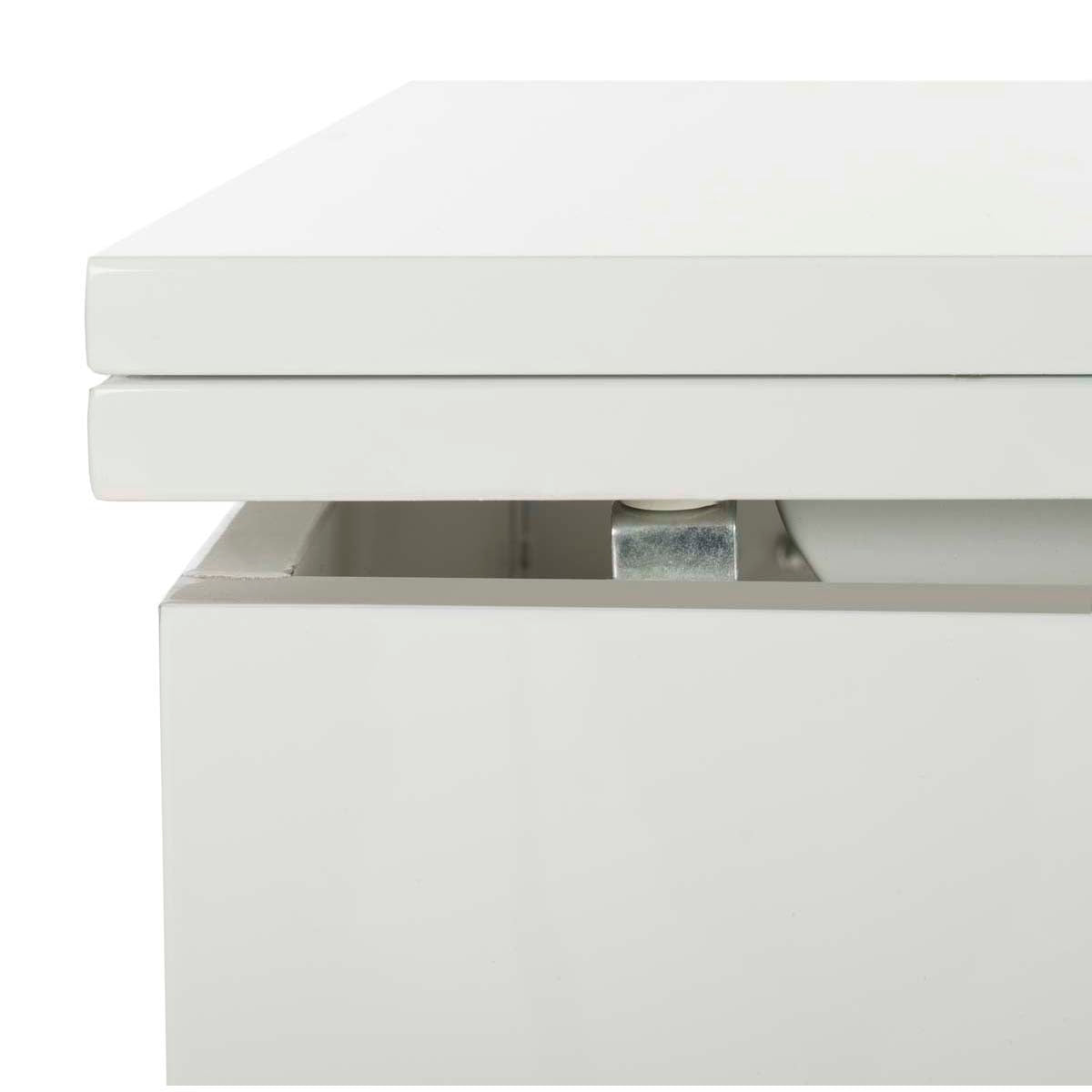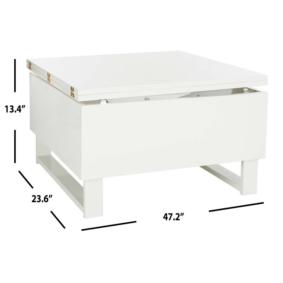 This lift top coffee table was designed to recreate the contemporary furnishings that outfit the inner sanctuary of an iconic British designer. Designed to accommodate life?? accoutrements, the depth of its white finish makes it an instant classic.