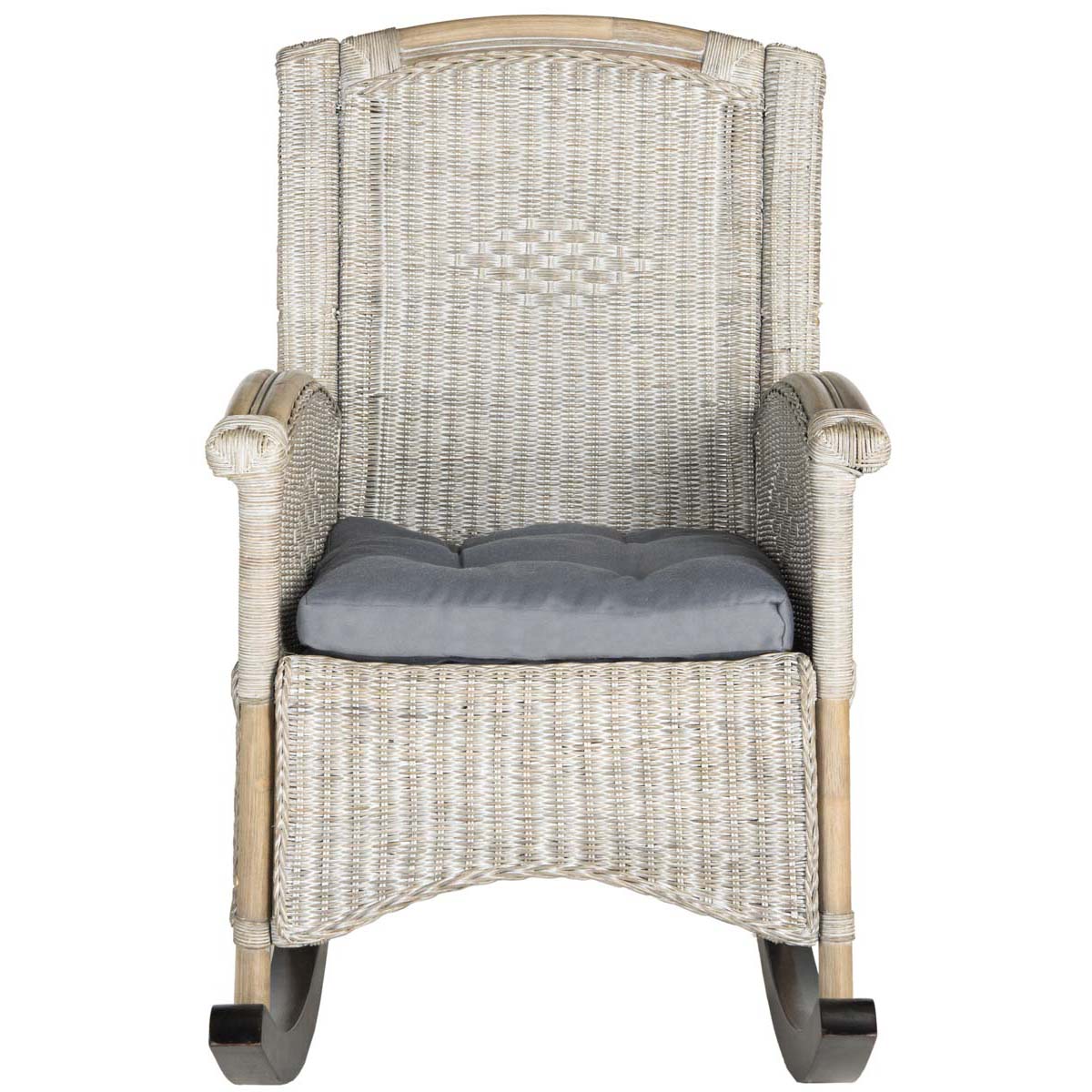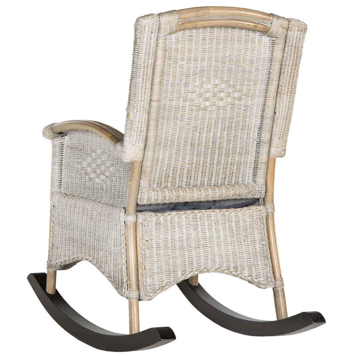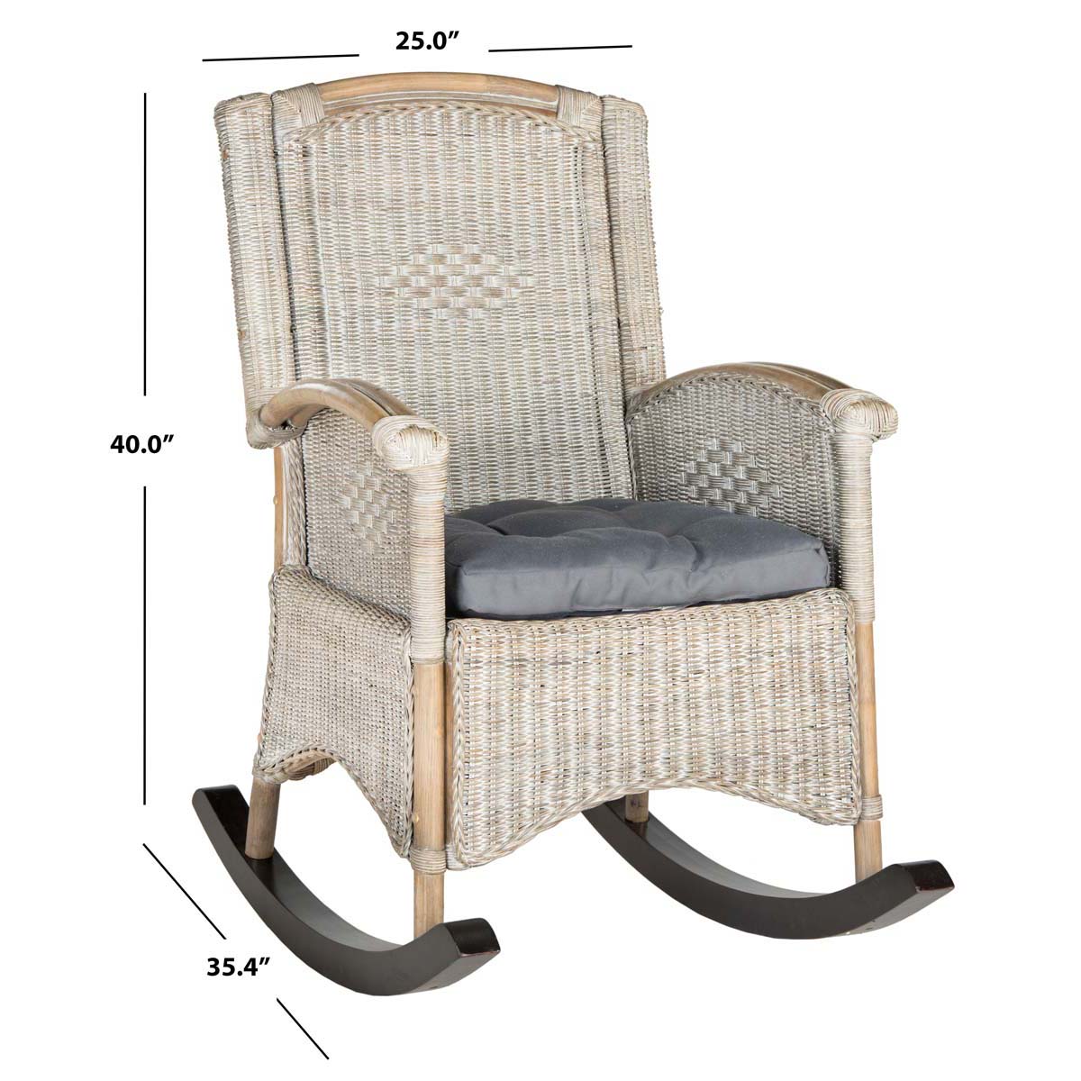 Enrich your leisure d?cor with the classic charm of this flawlessly detailed Verona Rocking Chair. Diamond weaved accents stand out from Verona's rattan back and sides, while exposed frame arching armrests, cushioned seat, and smooth wood runners provide stately comfort for max relaxation. Verona's antique finish makes it ideal for any room's color palette.