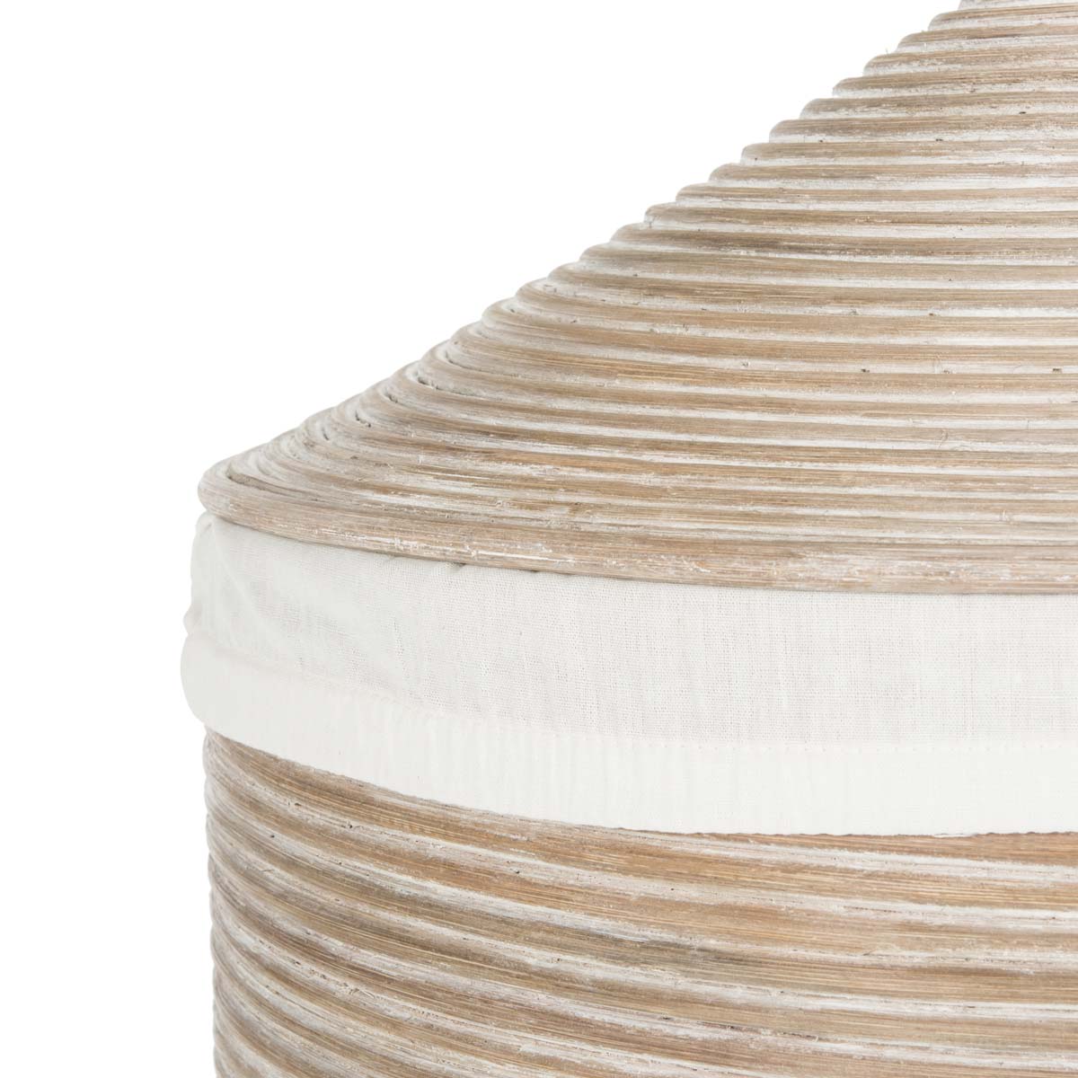 Inspired by a spa resort in Bali, this rattan storage hamper brings clean lines and minimalist style to the laundry room. Designed with a fresh natural hue and a white wash finish, its liner keeps things tidy and organized while its stylish lid keeps things discreet.