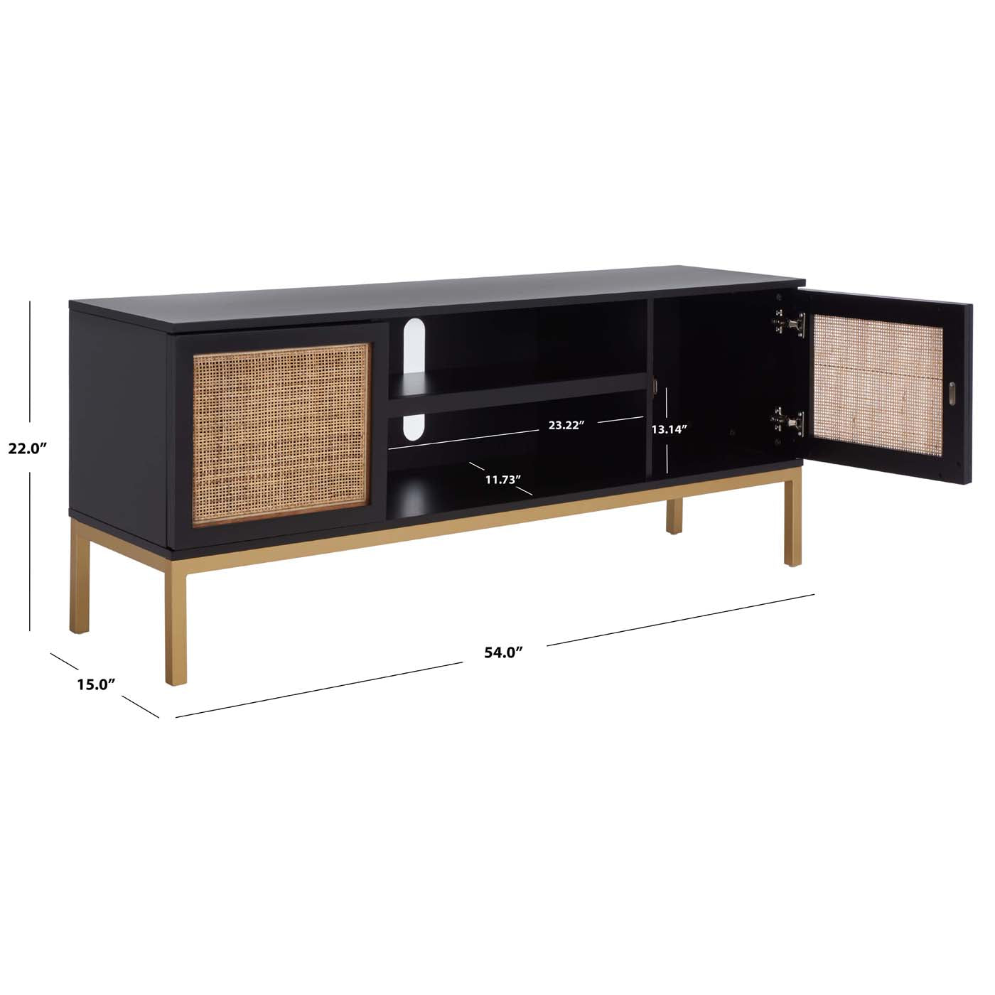 Safavieh Zadie 2 Shelf Rattan Media Stand - Black / Natural