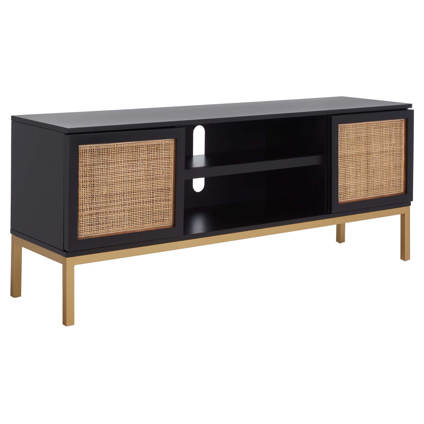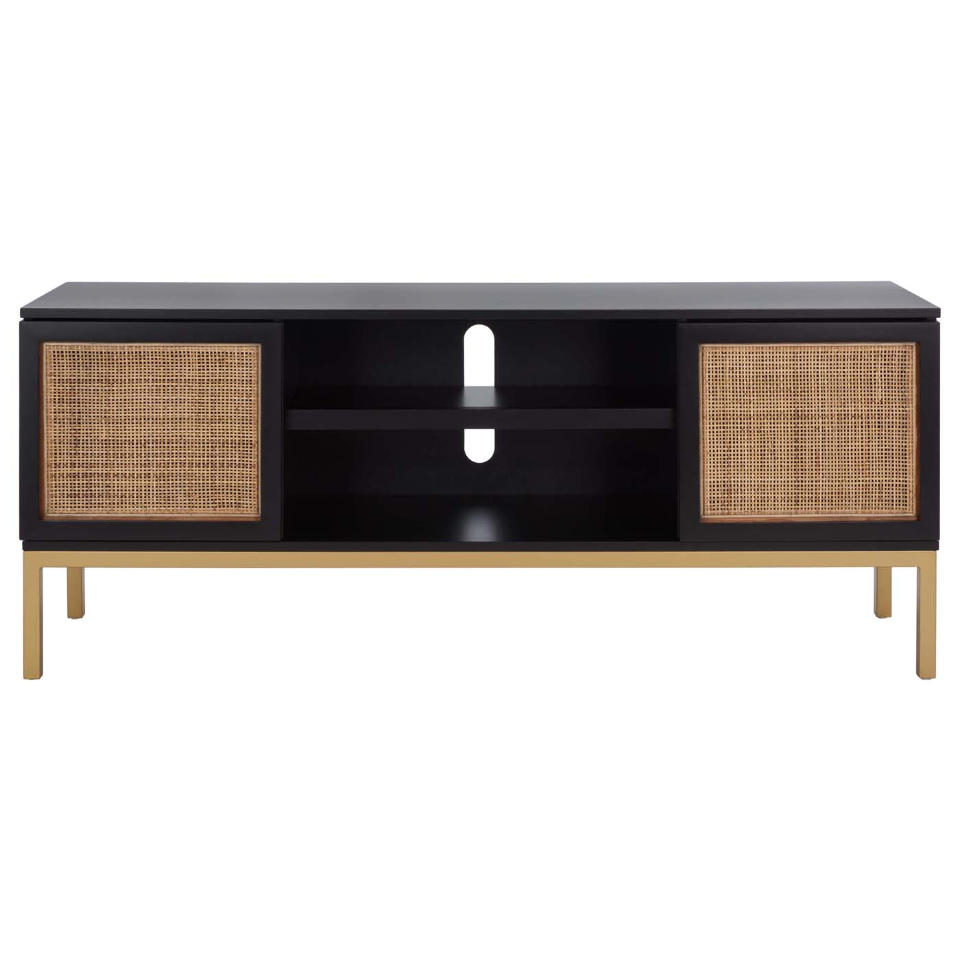 Celebrate contemporary coastal chic with this stunning Zadie Media Stand. Zadie?? black Parson??-inspired frame is beautifully offset by the organically woven natural rattan details on its two doors, while two shelves provide ample storage for consoles, streaming devices, or seasonal d?cor.