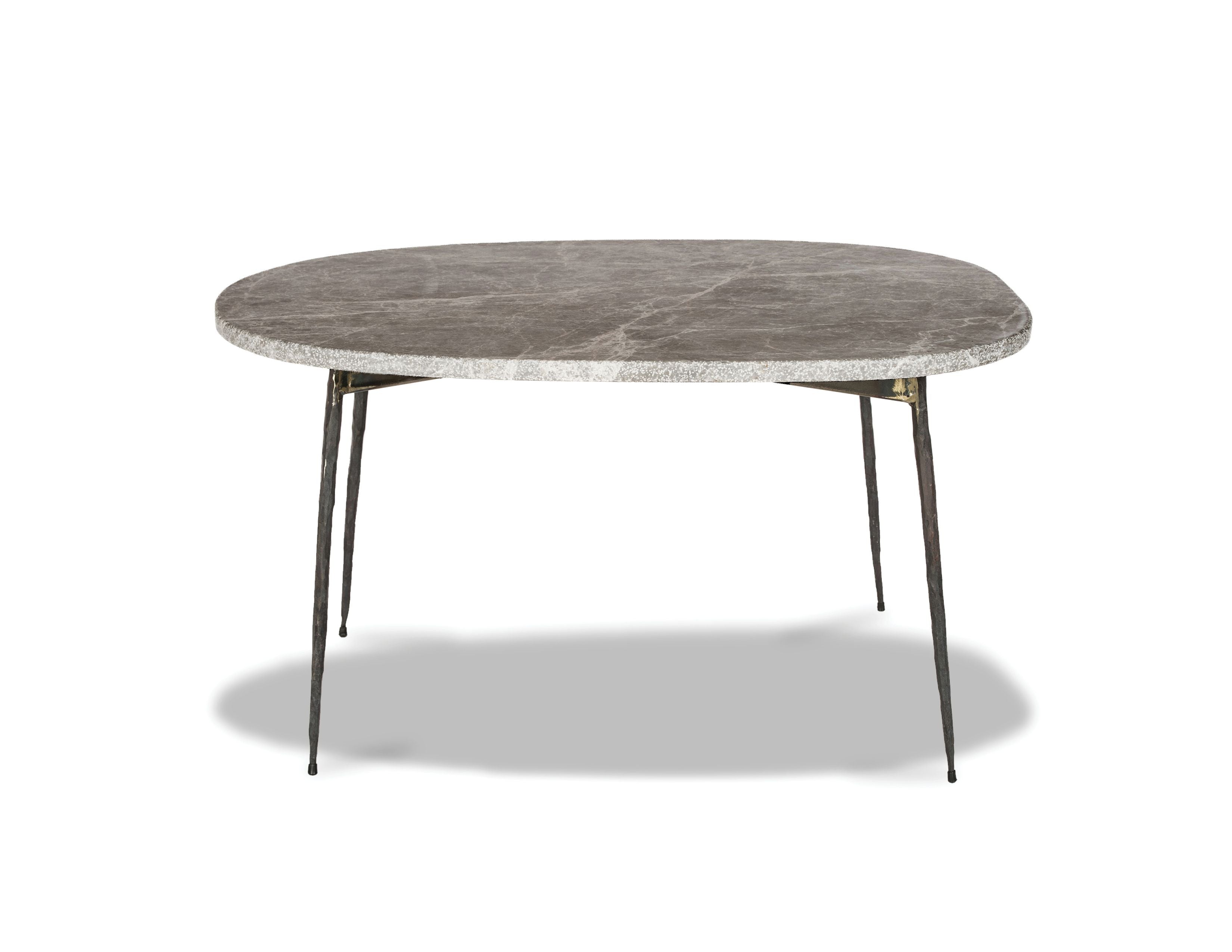 TUKTUK Small Coffee Table Grey Marble Black Hammered Iron Legs | Mobital - WCO-TUKT-GREY-SMALL