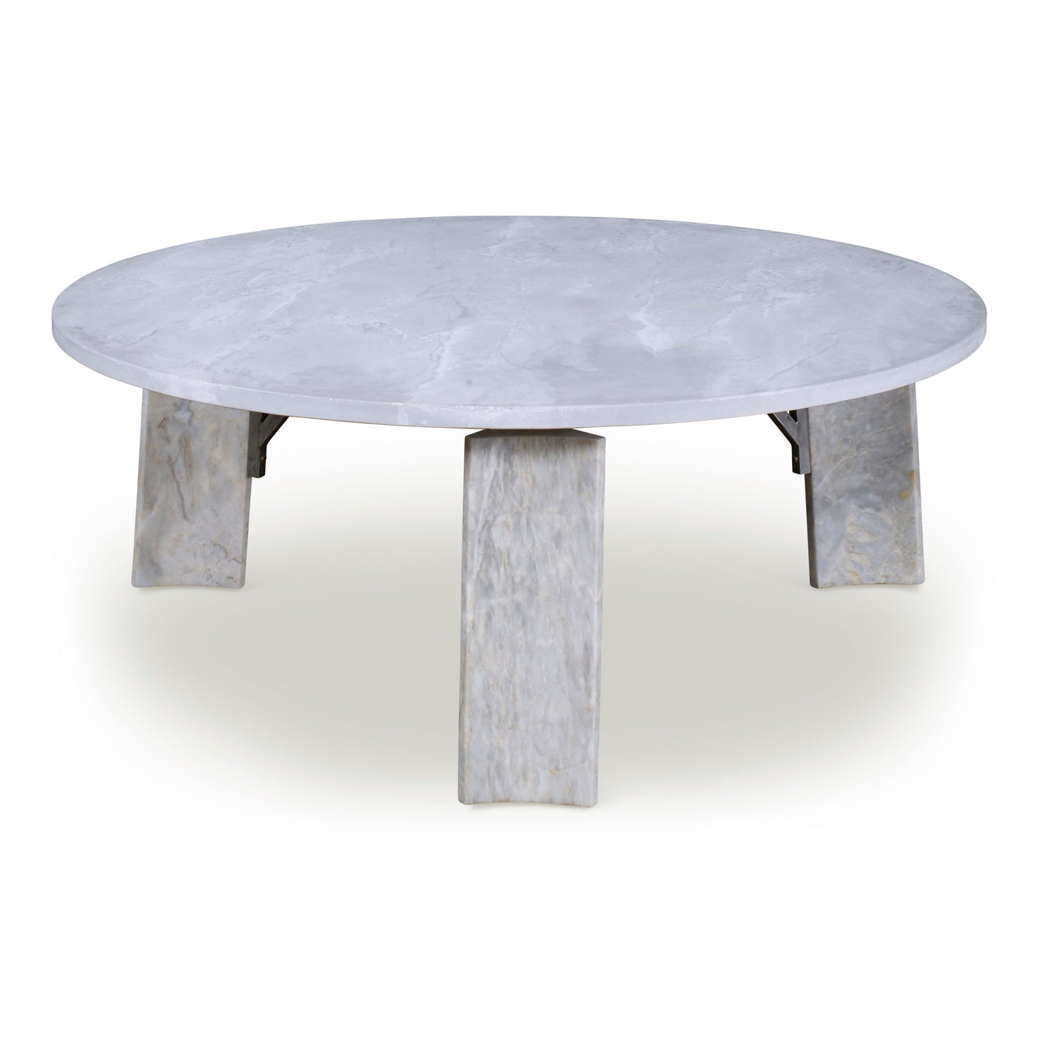 Stoneham Cocktail Table with Provence Finished Scagliola Top and Marble Legs, Steel Accents