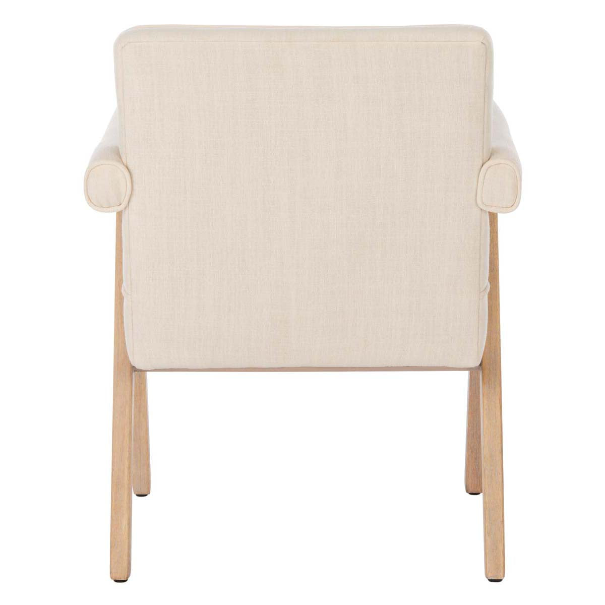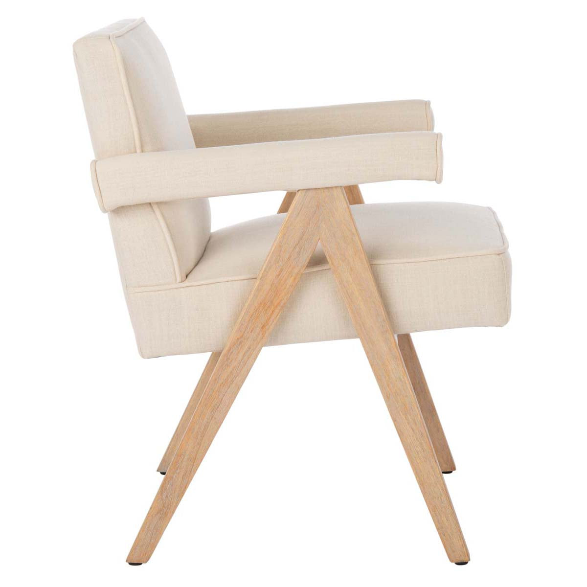Suri Mid Century Arm Chair | Safavieh - ACH4508 - Bone Linen / White Washed / 23.2" X 24" X 29.9" is backordered and will ship as soon as it is back in stock.