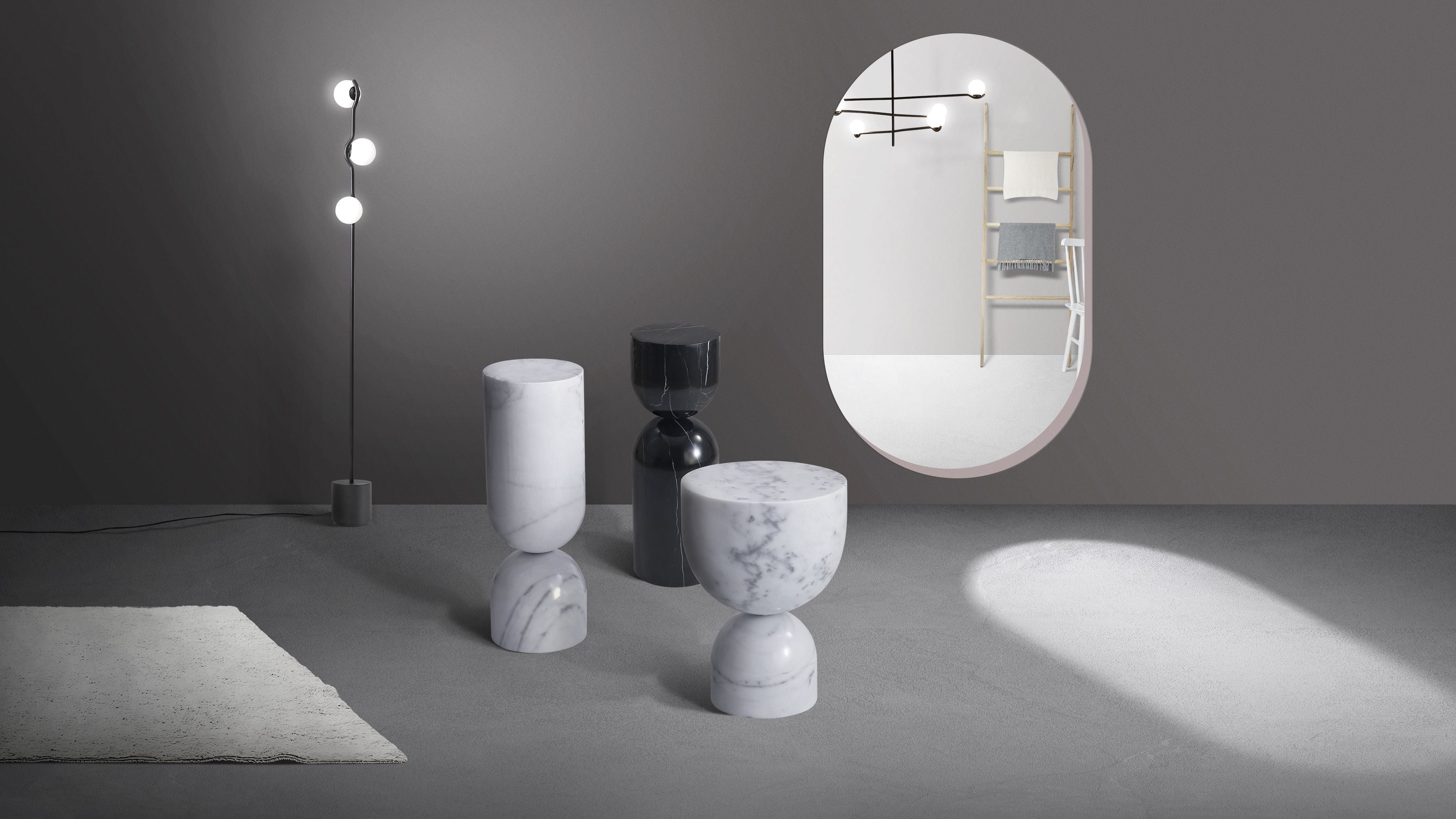 If you're looking for sculptural and practical combined together, the apothecary collection is for you. These occasional tables are reversible and pair in tall or low sizes and are made from solid black or white marble.