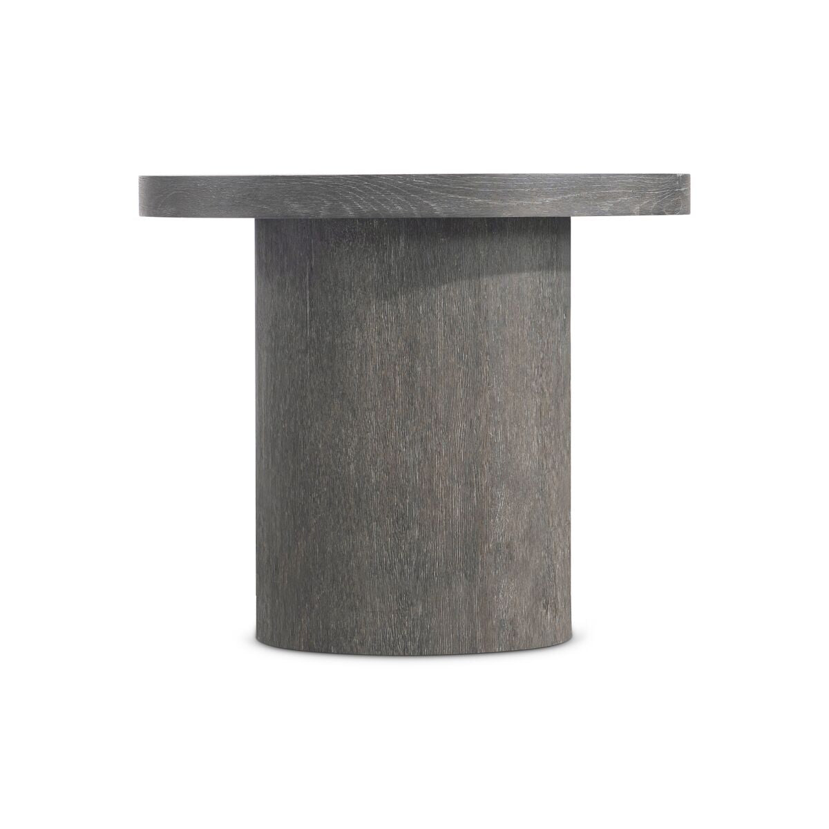 Wirebrushed Oak Side Table With Round Top In Tadon Finish. Adjustable Glides.