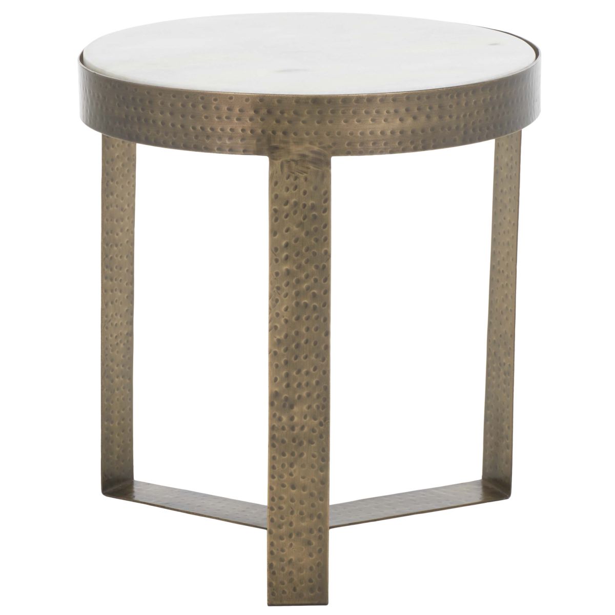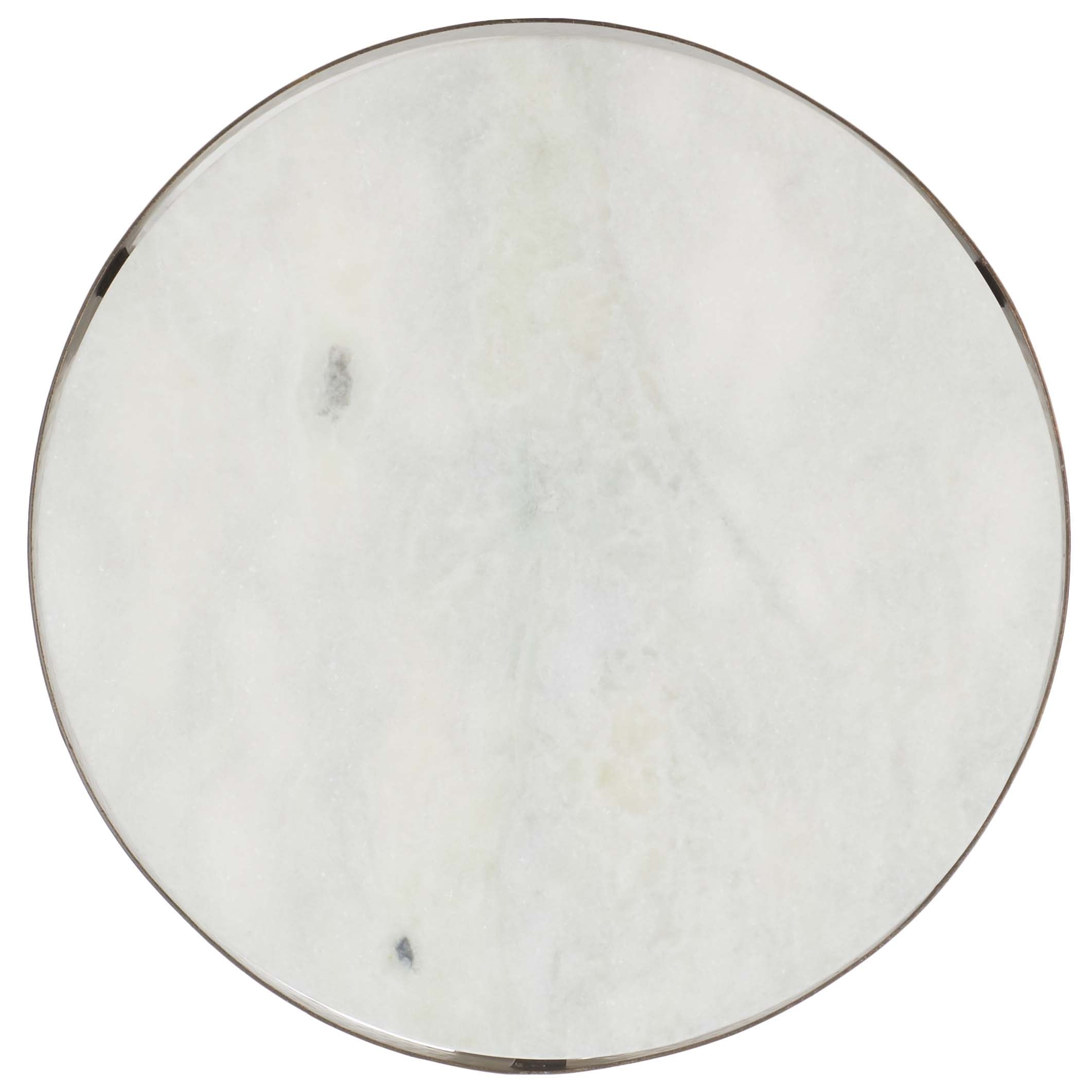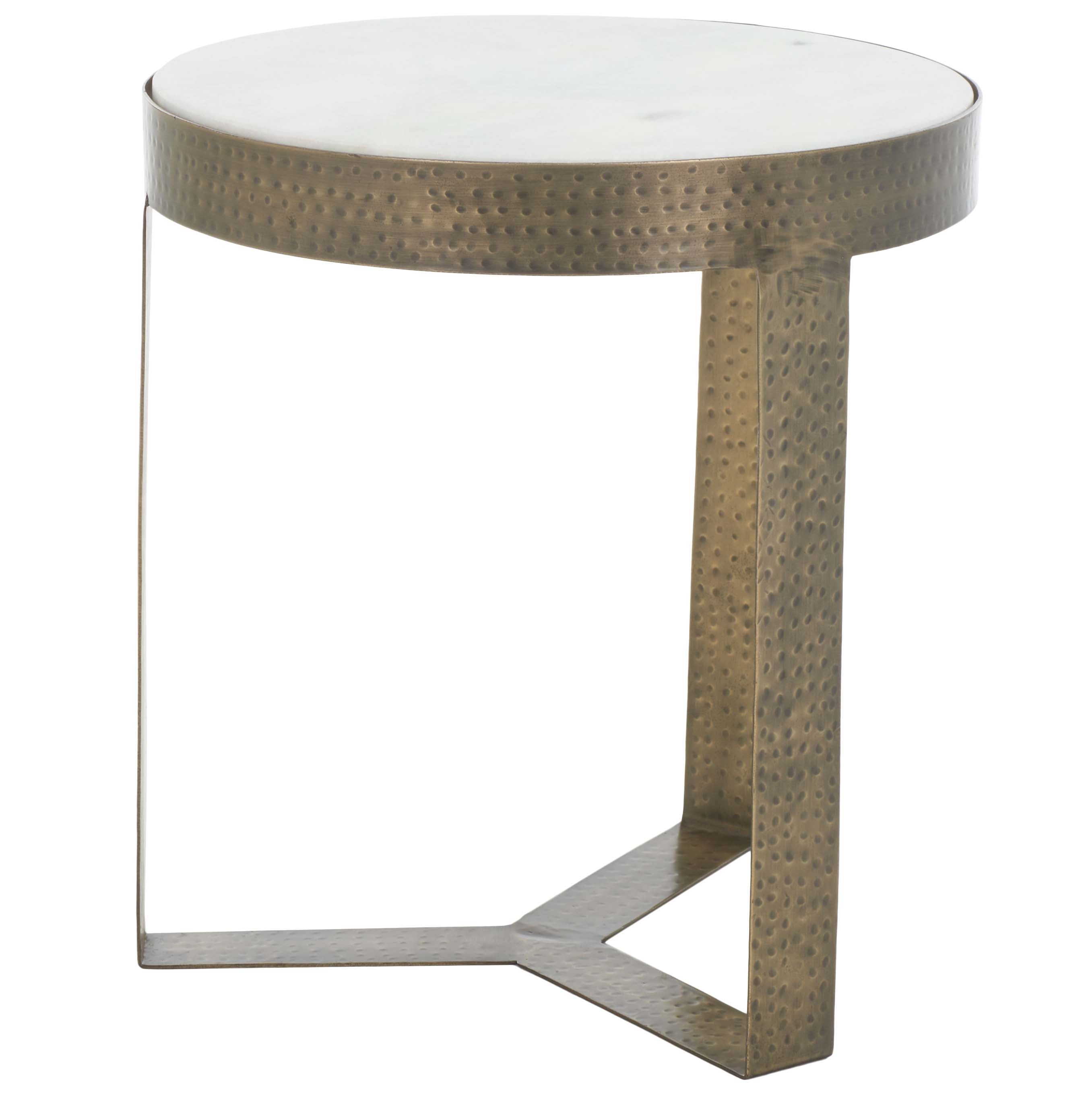 Glam up any corner with the refined and sophisticated appeal of our Triss round accent table. Our sleek and streamlined table stands out with a blend of fine materials. A stunning white marble top is anchored within a gleaming antique brass frame. Resting upon a beautifully minimalistic three-legged base, our accent table impresses with its sophisticated and effortless style. Perfect for keeping a book or beverage within arm's reach, the end table serves as the stylish companion to your sofa, armchair, or bed.