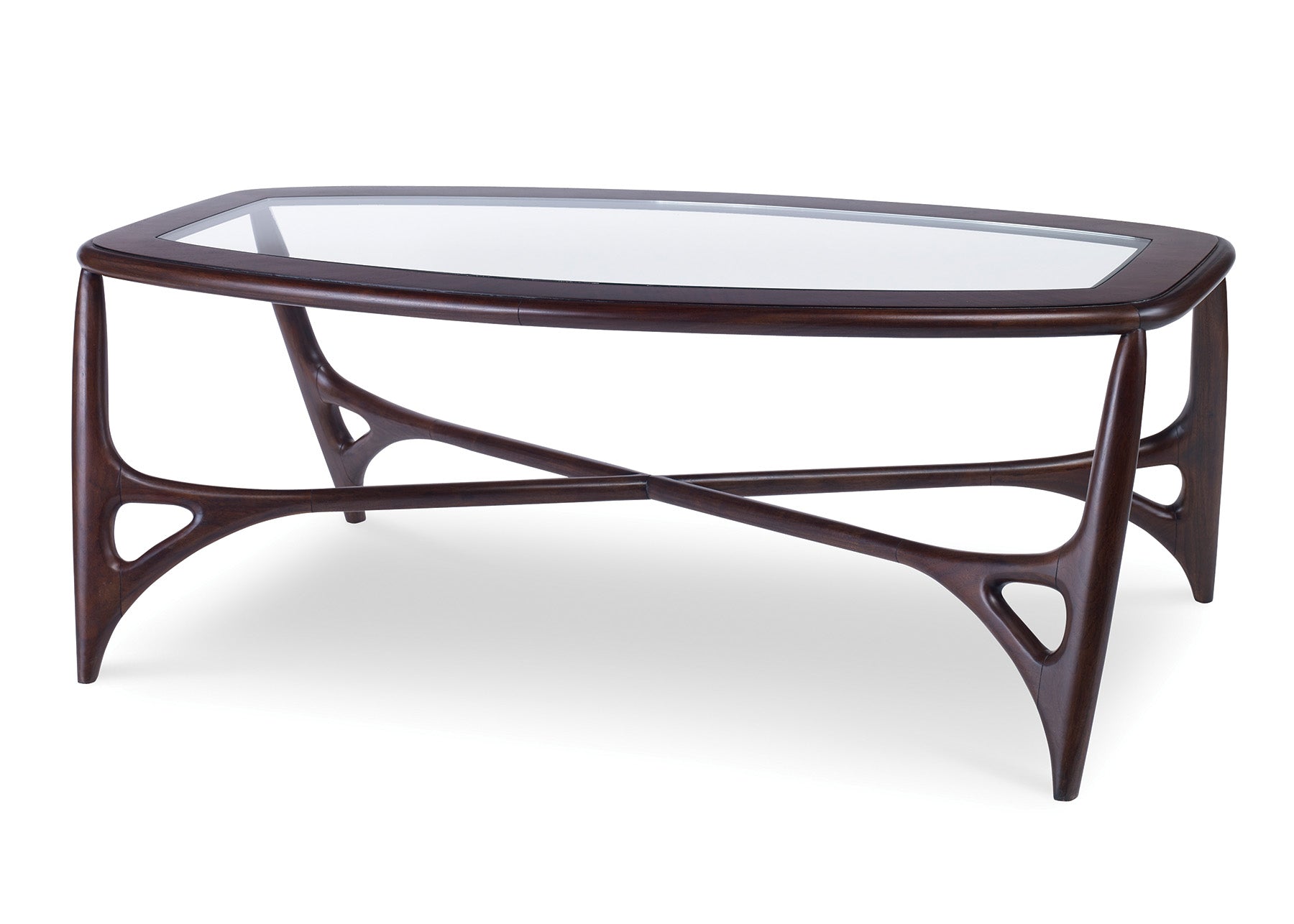 Medium Walnut Finished Walt Cocktail Table with Glass Top