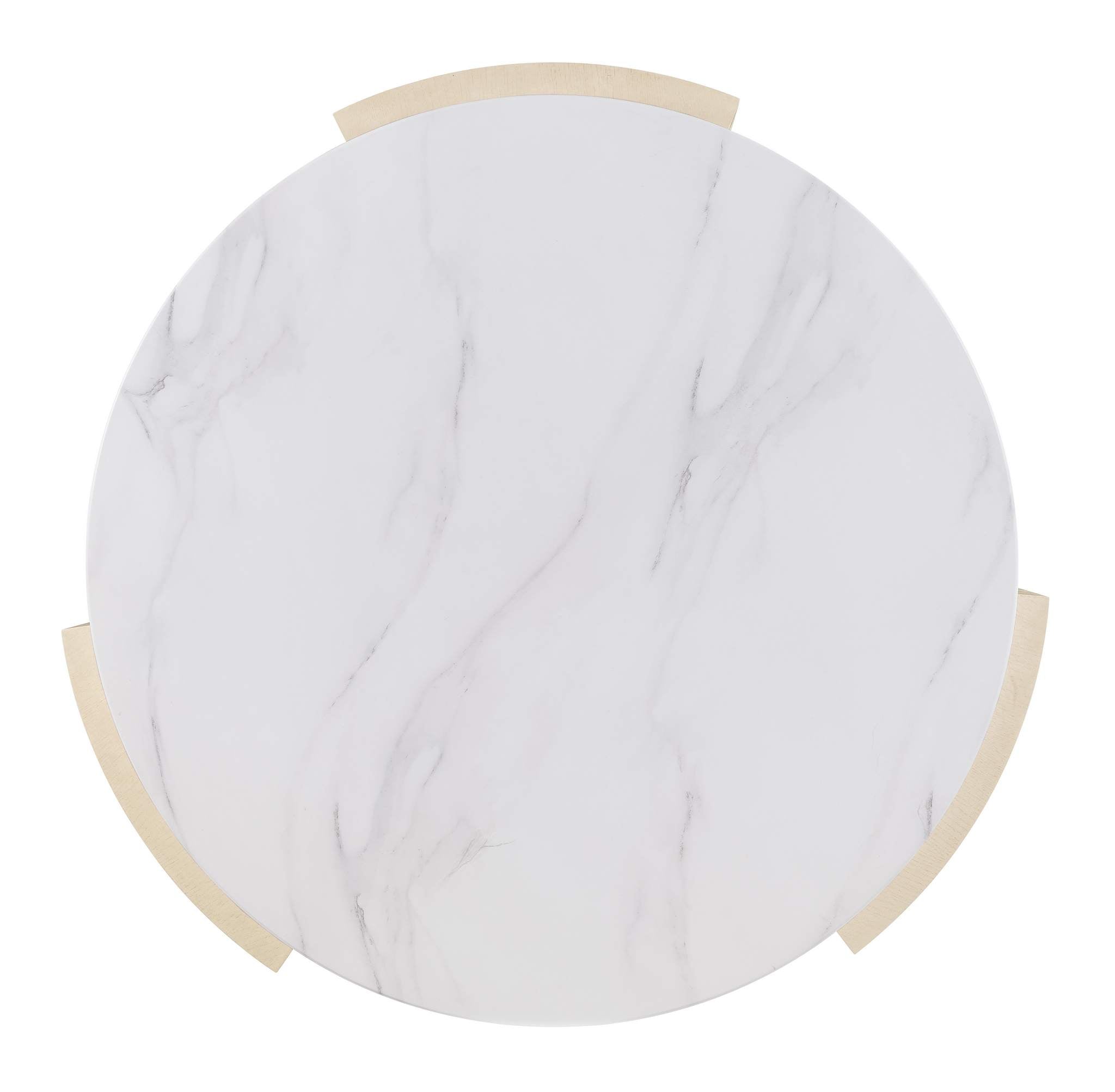Finish: Polished Limestone finish on quartered oak veneers. The Volakas stone top showcases a natural blend of white, gray, and other organic tones for a unique, elegant finish.