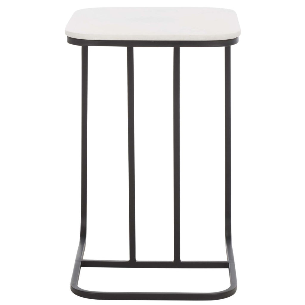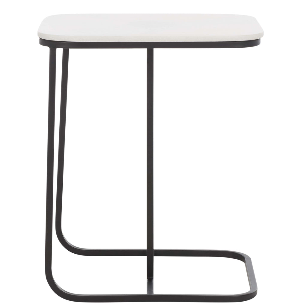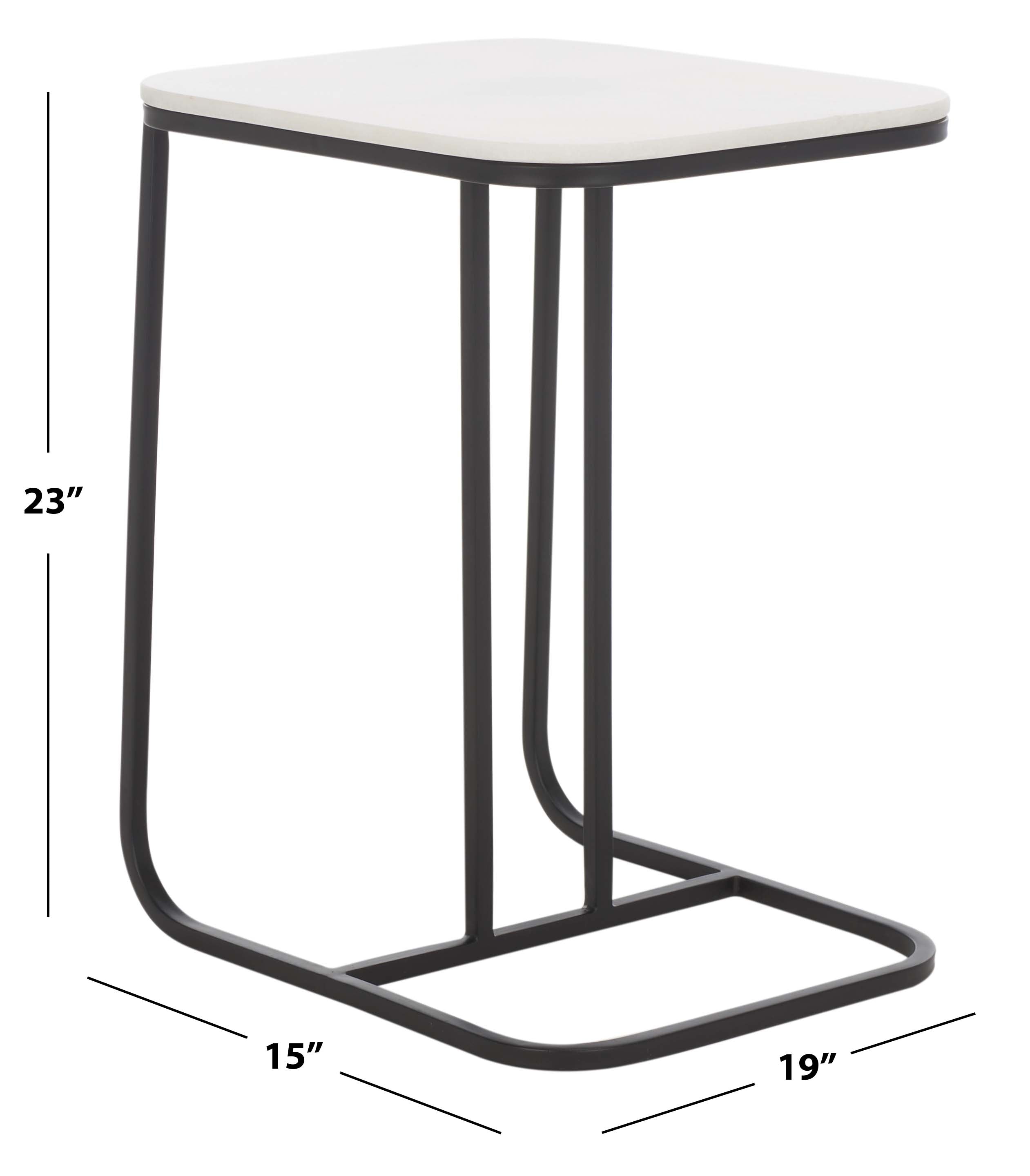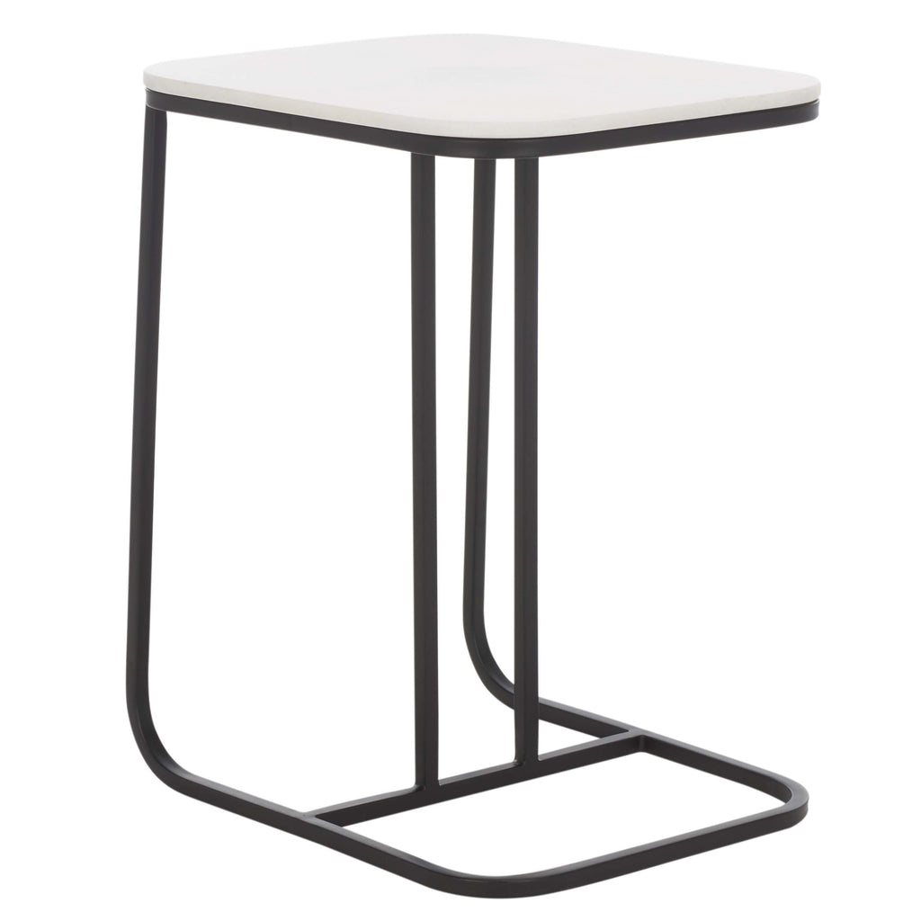 Elevate the style and functionality of your home with our C-shaped Yenna accent table. The crisp lines of our accent table are softened with curved edges to serve as a refined and charming addition to your home. Its stunning white marble tabletop strikes the perfect contrast with the minimalistic black iron base. Both lightweight and space-friendly, our end table fits into any corner to complement your sofa and armchair. The convenient C-shape allows you to slide the accent table a little closer for easier access to food, drinks, and other essentials.