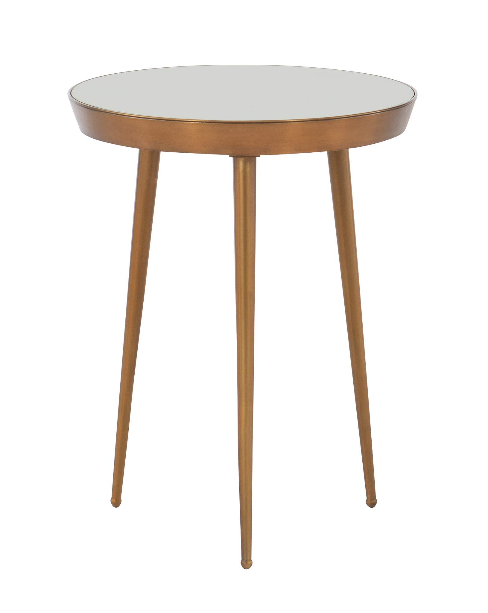 The perfect accent table inspired by a vintage French Modern find overseas, this mid-Century influenced table is petite but full of style. With three brass legs and its eglomise reverse painted glass top, it’s fantastic in sets of two or three. Standard and only available in Yvette finish.