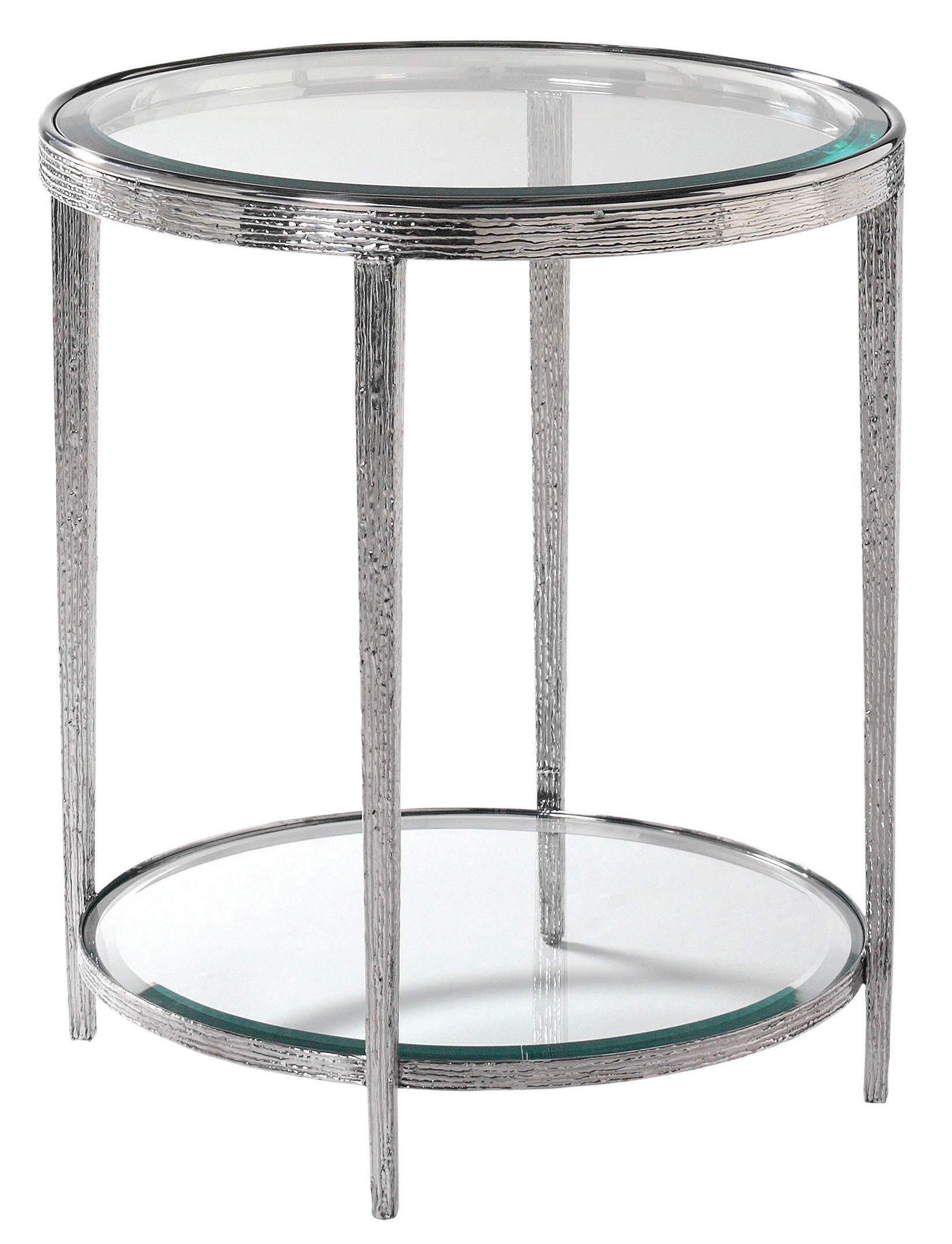 Nickel Finished Jinx Round Side Table with Glass Top and Shelf