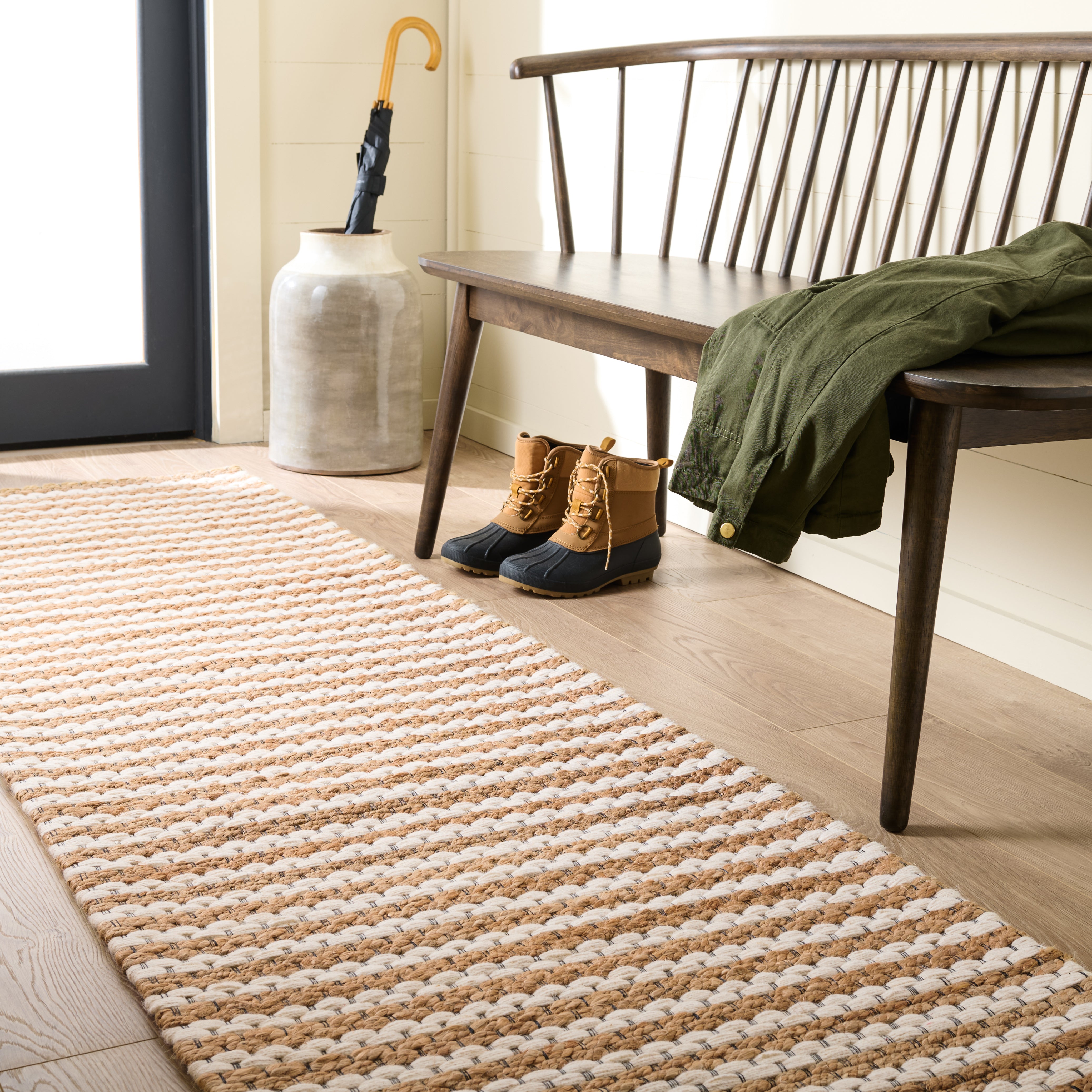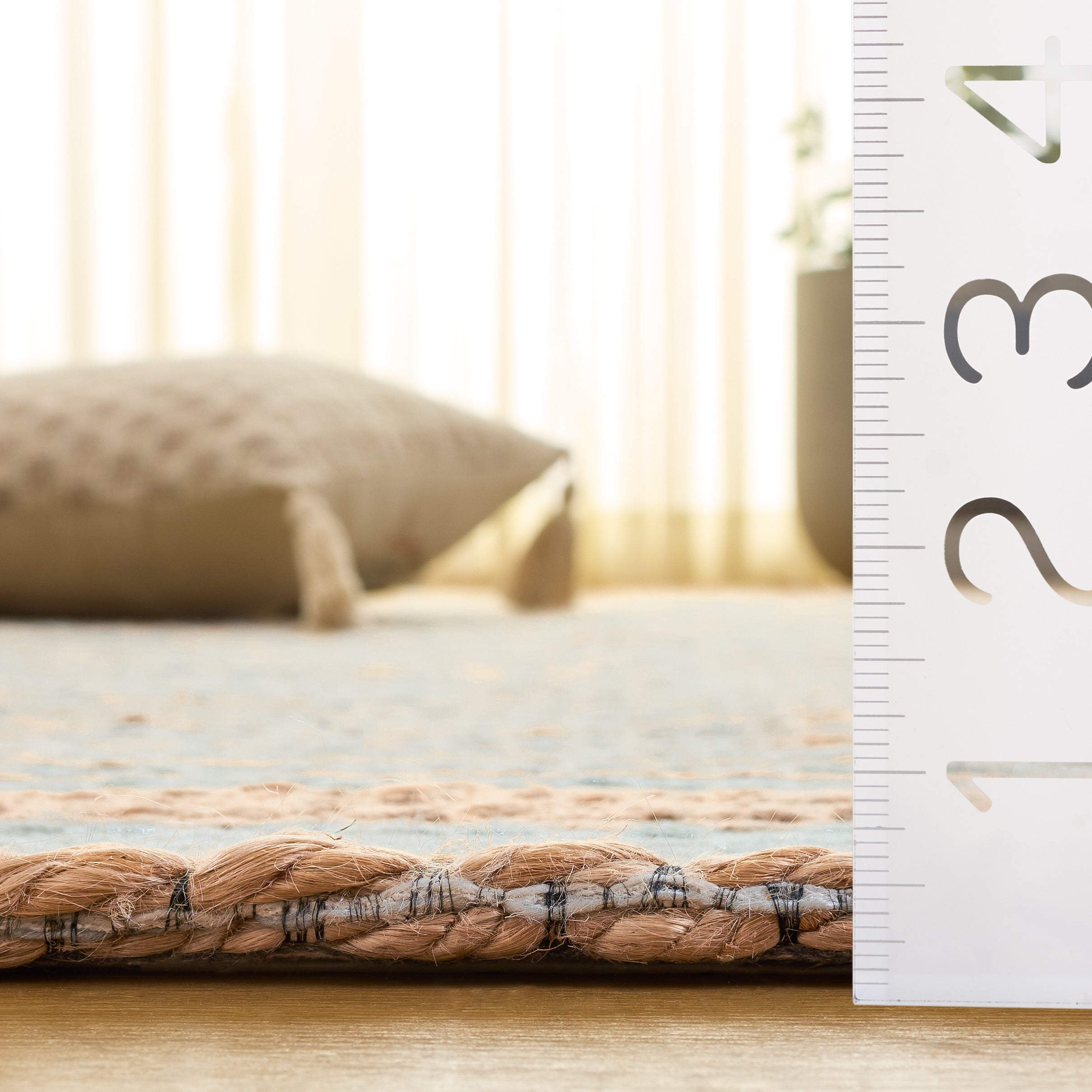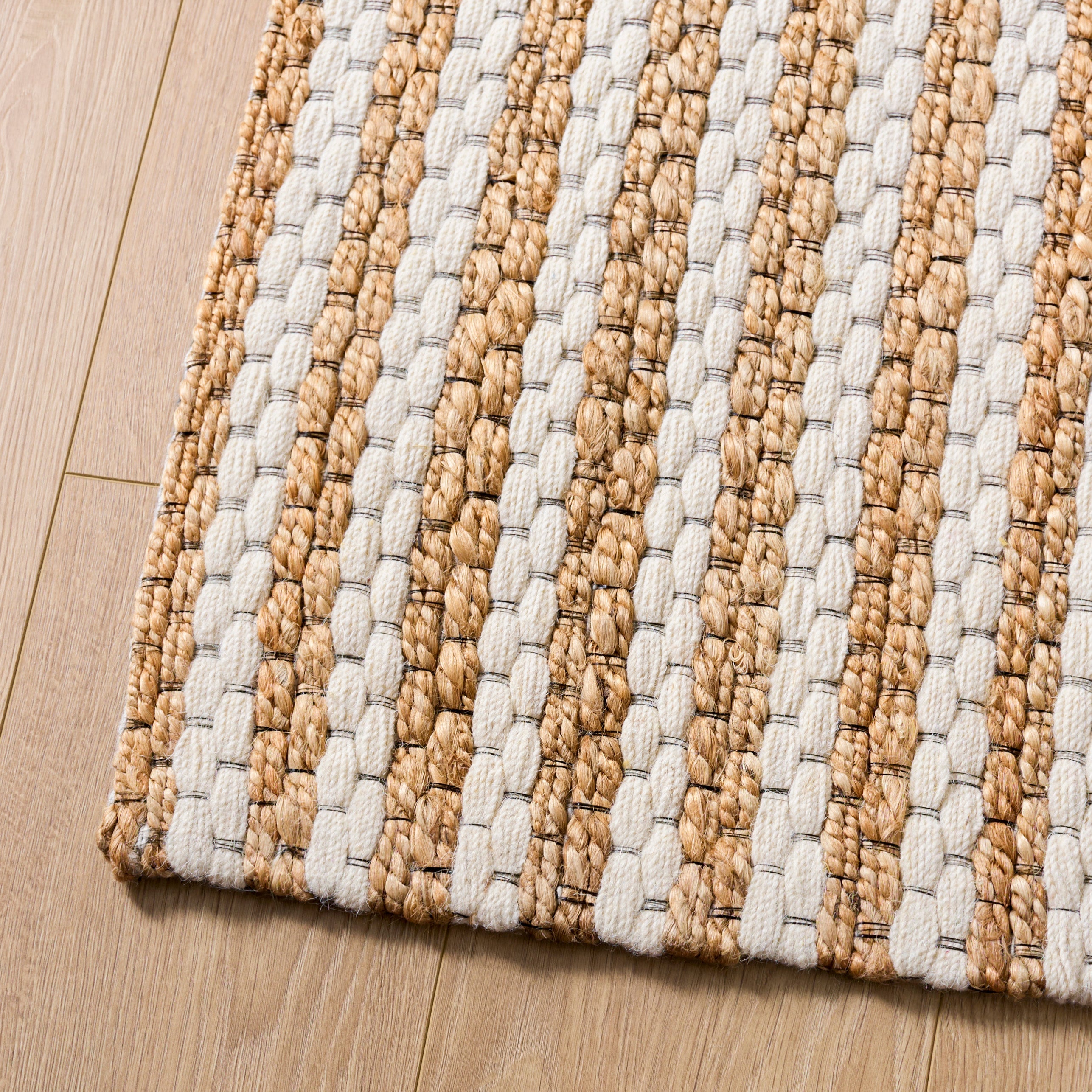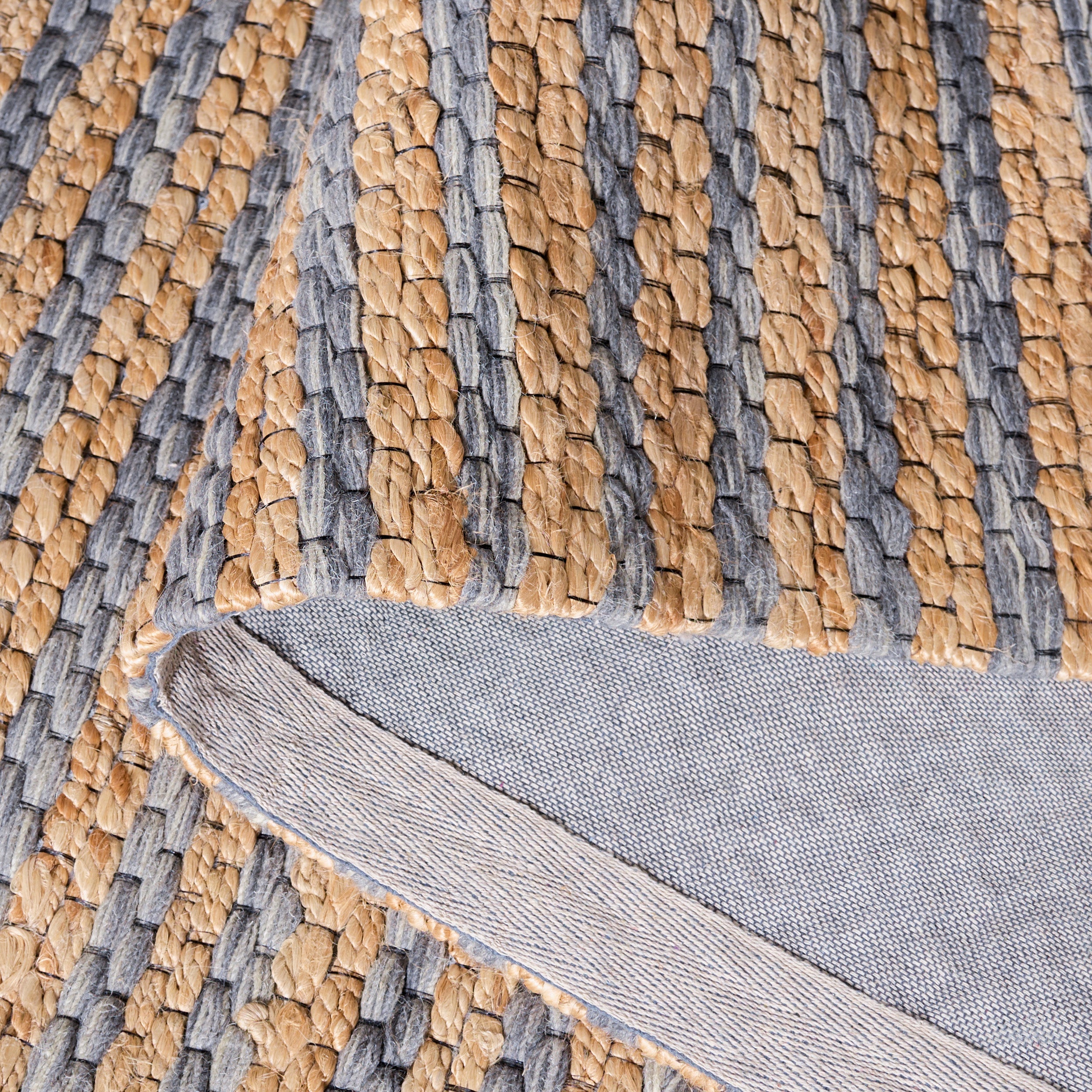 Elevate your space with our exquisite modern area rug crafted to blend seamlessly into any decor. This rug provides the perfect addition to any space, delivering a natural and sophisticated touch to your home. Delight in pleasing colors that presents an understated elegance with its natural hue. Handmade with care using a hand-tufted weave technique, this rug combines a harmonious blend of 40 percent Jute, 40 percent Wool, and 20 percent Cotton materials. Sourced from India, it embraces a minimalist style with no pattern, allowing the texture and neutral tones to take center stage. The rug stands at a comfortable height of three-eighths of an inch, adding just the right amount of cushion underfoot. Its union of natural materials and contemporary design makes it a delightful addition to your modern living space, offering style and comfort effortlessly.