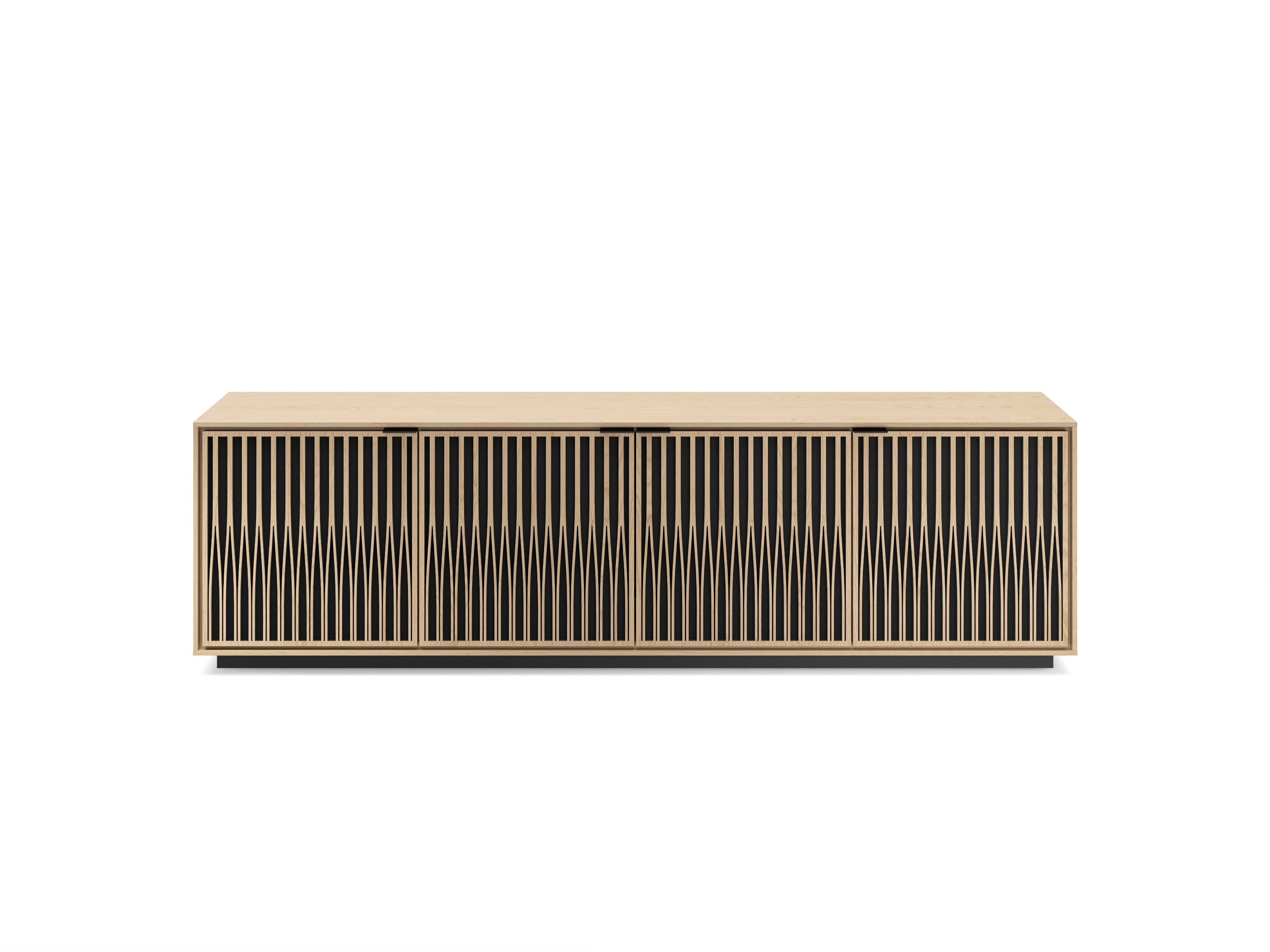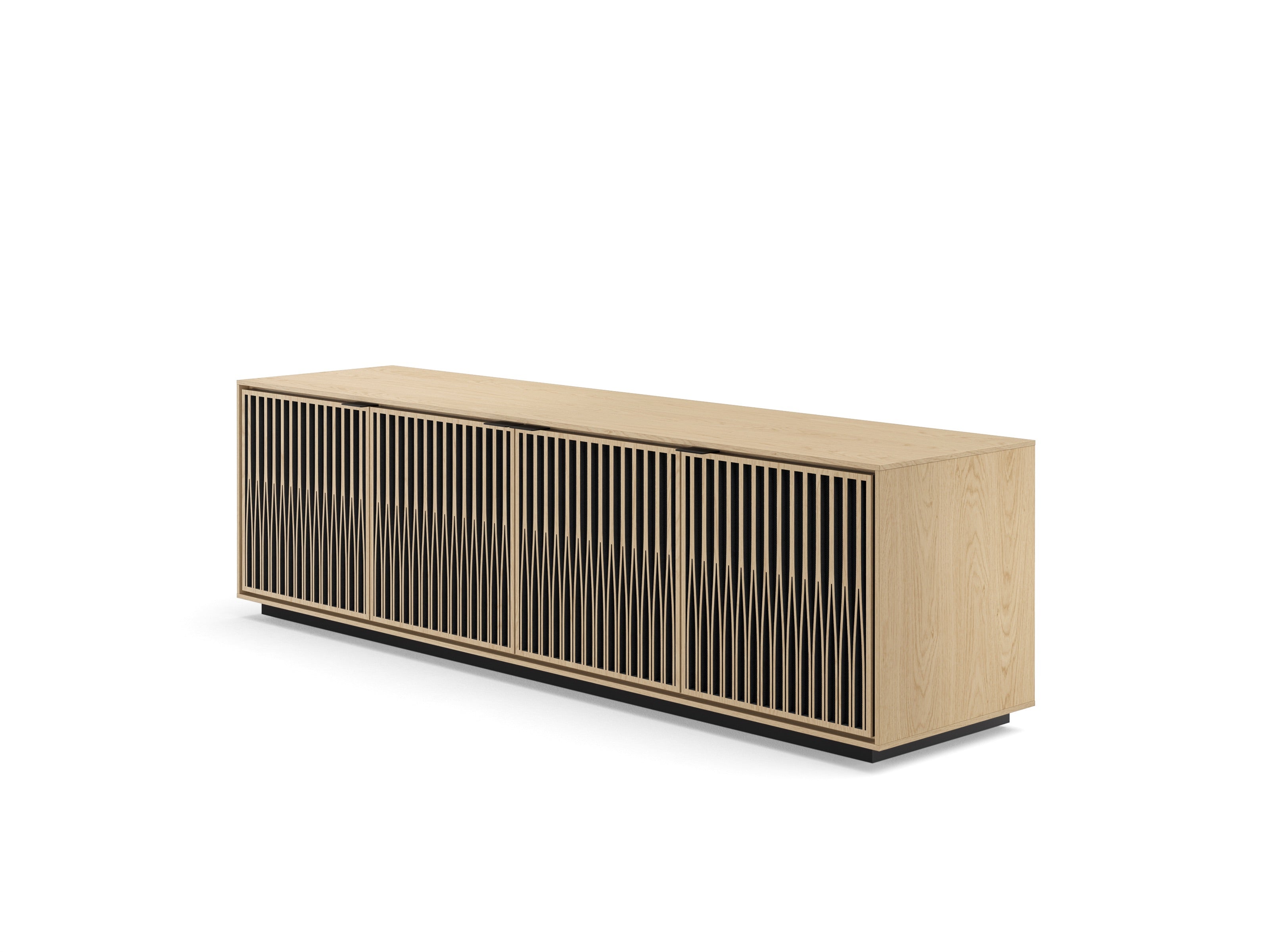 Designed to echo the rhythm of sound waves, this media and storage cabinet showcases Elements’ TUNE door pattern. With its hidden wheels, the low-profile Rolling Plinth Base allows for smooth movement and easy access.