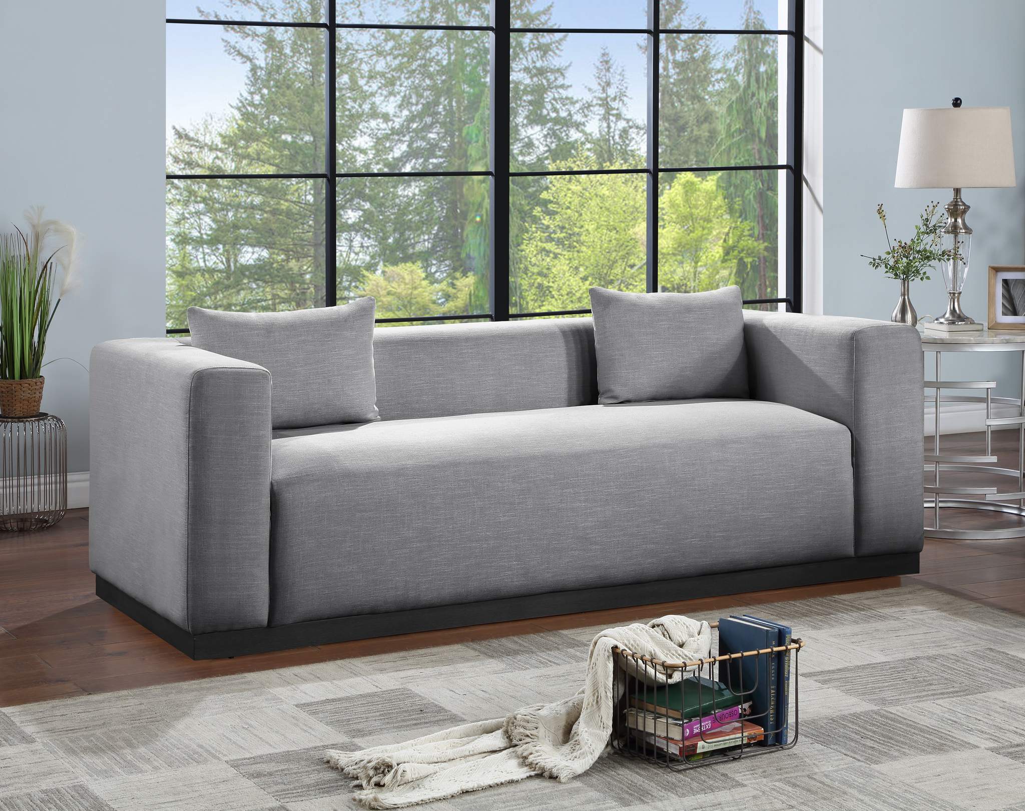 Alfie 90.5" Grey Linen Textured Fabric Upholstered Sofa | Meridian Furniture - 642Grey-S