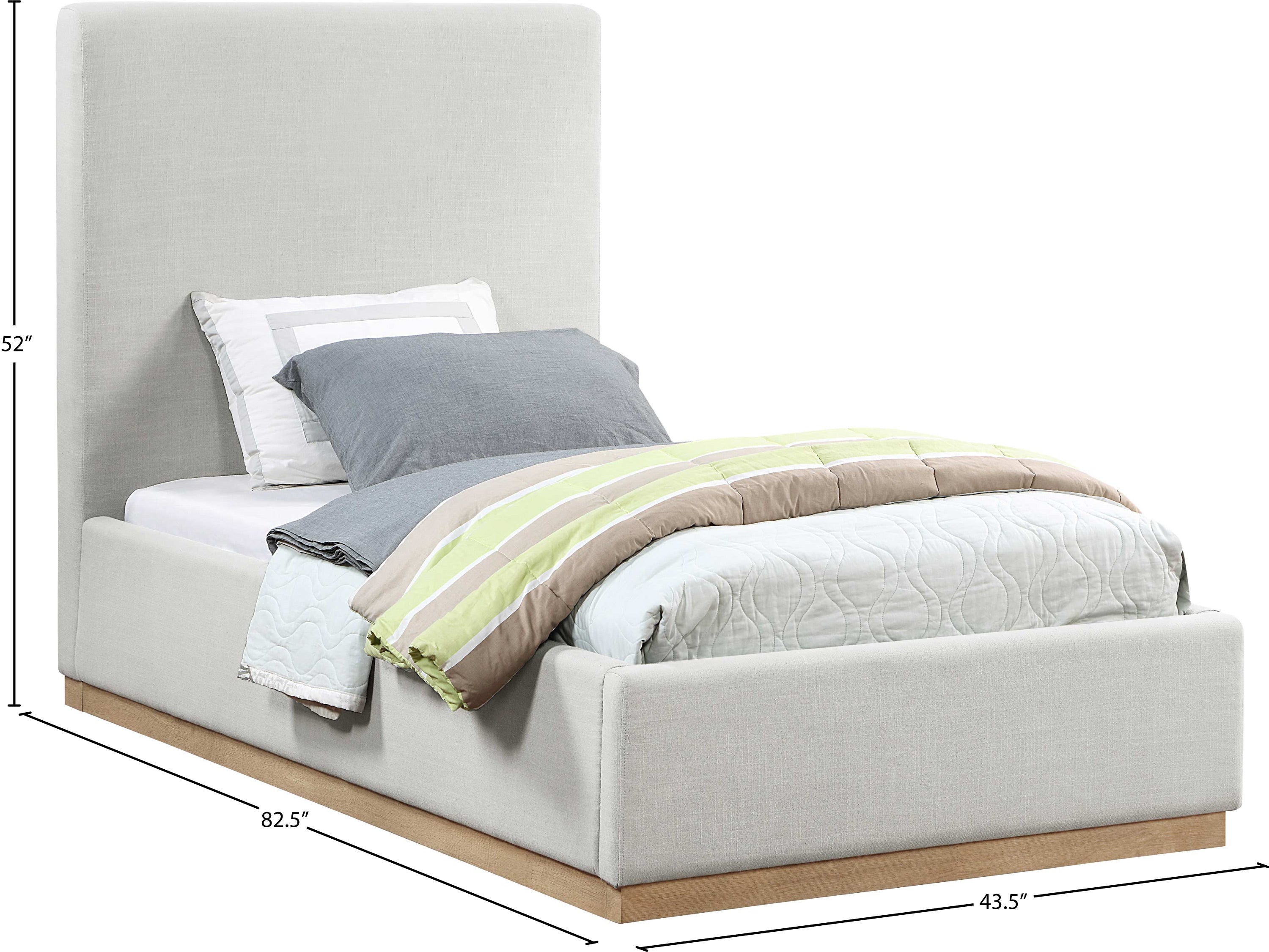 Alfie Cream Linen Textured Fabric Upholstered Twin Bed | Meridian Furniture - AlfieCream-T