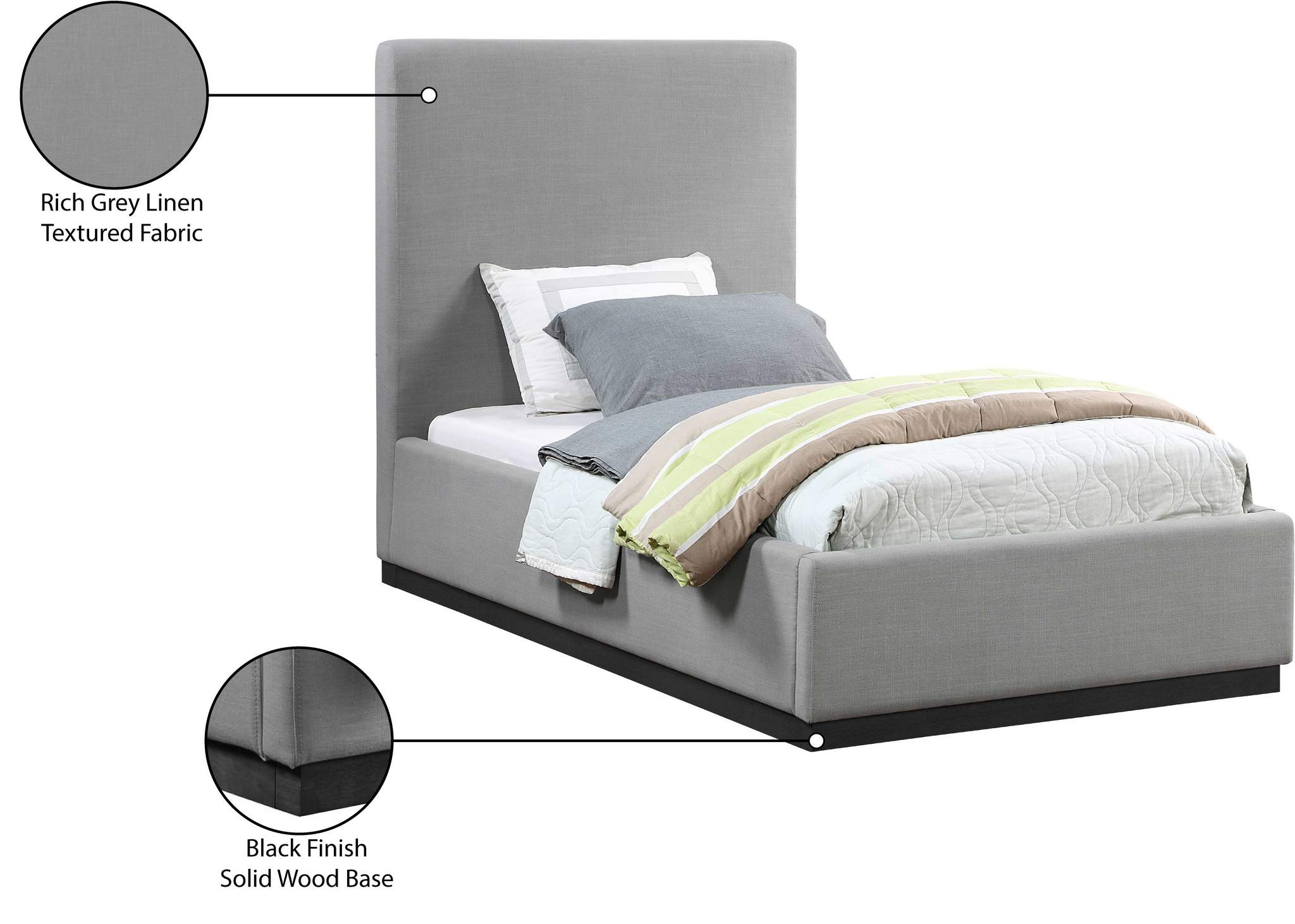 Alfie Grey Linen Textured Fabric Upholstered Twin Bed | Meridian Furniture - AlfieGrey-T