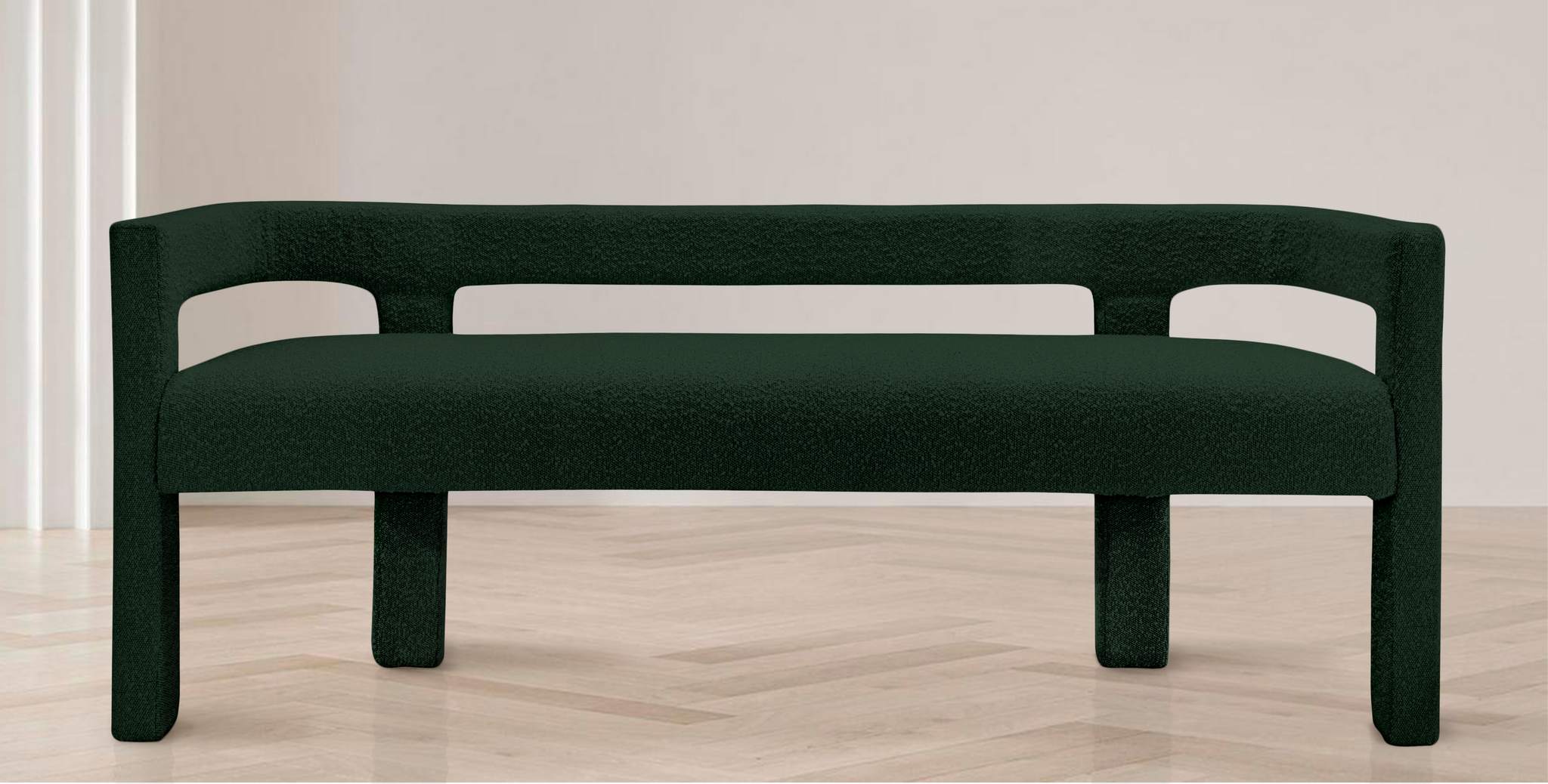 Athena Green Boucle Fabric Upholstered Bench | Meridian Furniture - 865Green
