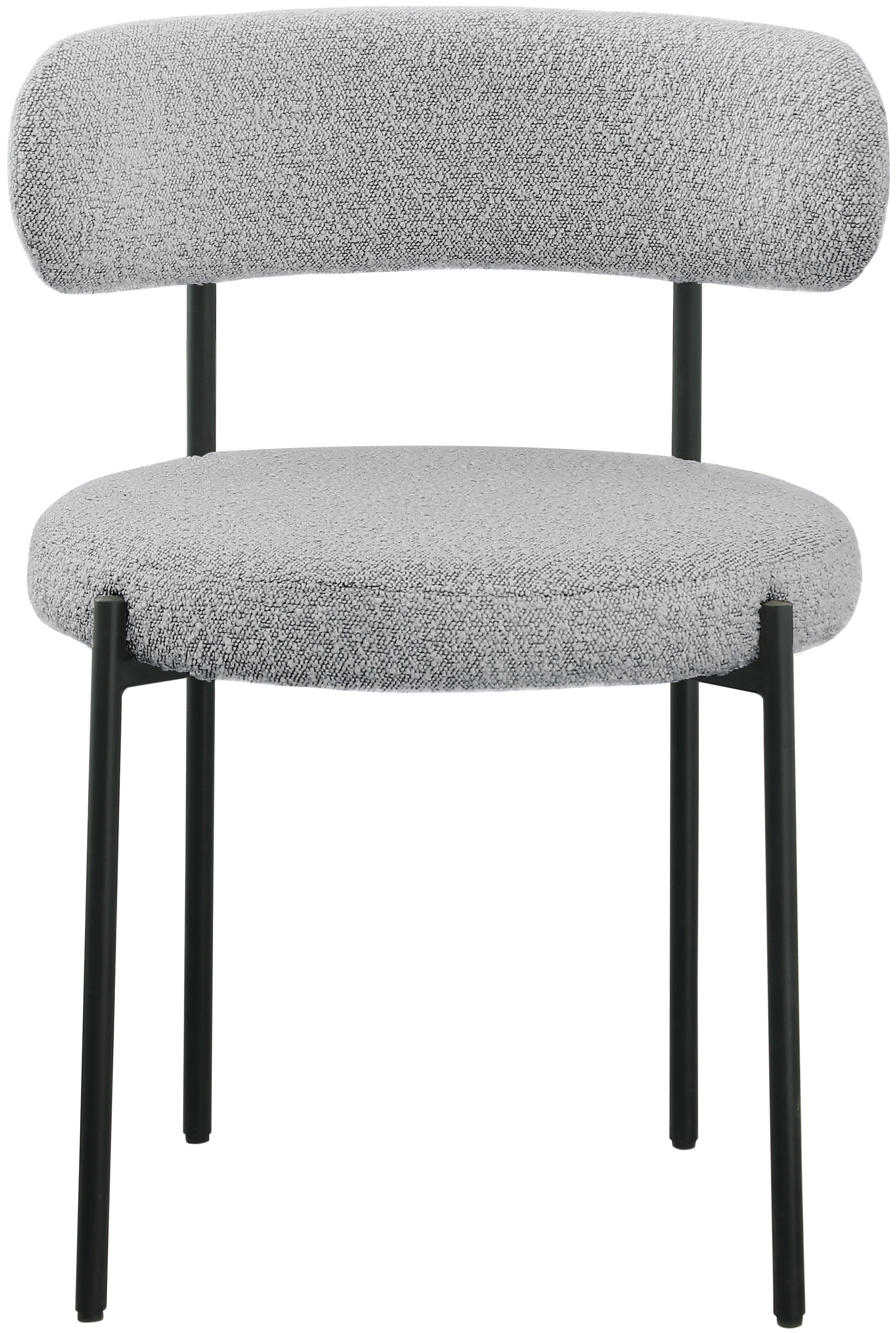 Liven up your dining area with this Beacon grey boucle fabric dining chair. Crafted from iron and boucle fabric, this chair is both sturdy and cozy. Its matte grey metal frame provides foundational support while its curved seat and backrest provide physical support for those who sit in it. Its rounded appearance gives it a contemporary look perfect for any modern living space. This chair is just the right height to kick back and enjoy your meal.