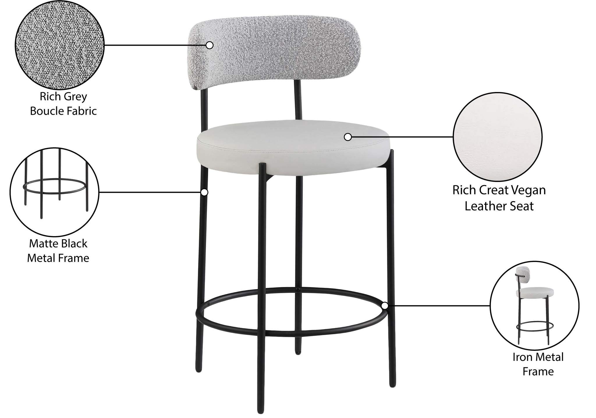 Beacon Taupe Vegan Leather And Boucle Fabric Upholstered Counter Stool (Set of 2) | Meridian Furniture - 878Taupe-C