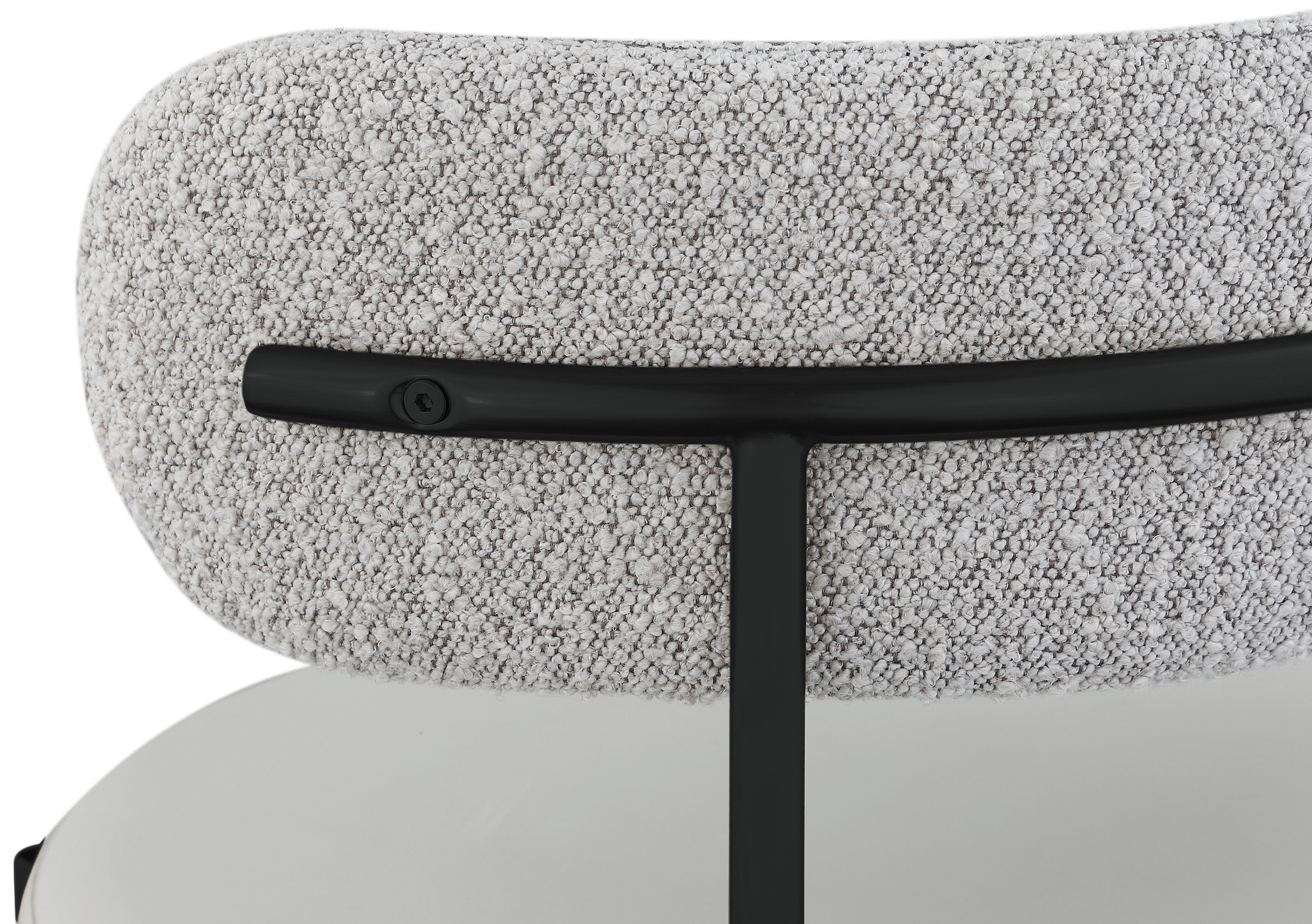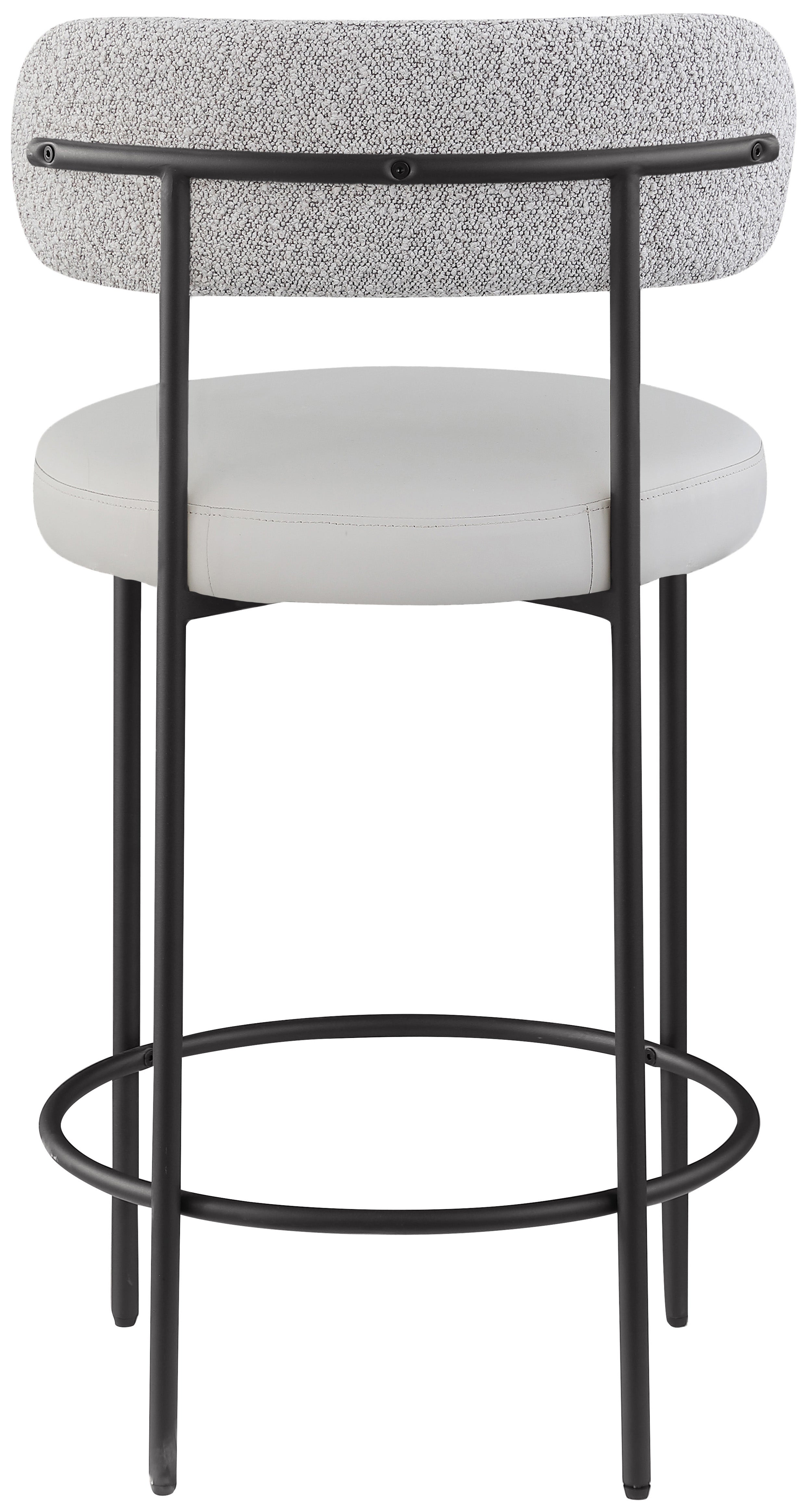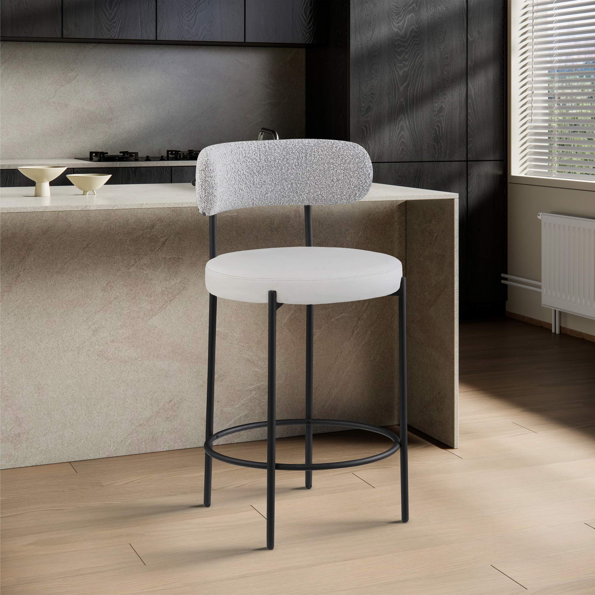 Make family, friends, and guests want to stay 'till closing time when they're seated on these Beacon vegan leather and boucle fabric bar stools/counter stools. These handsome stools are just the thing your kitchen counter or home bar is missing, with their ultra-modern design and beautiful look. The curved backs support the body while you sip a frosty cold one or nosh on some breakfast fare. A matte black metal frame gives the stools' design durability while the taupe vegan leather seat and boucle fabric back adds a touch of softness and comfort.