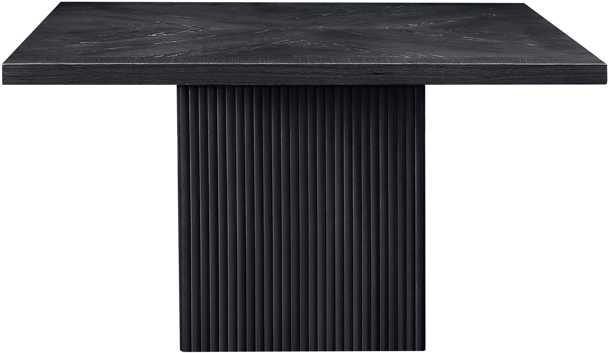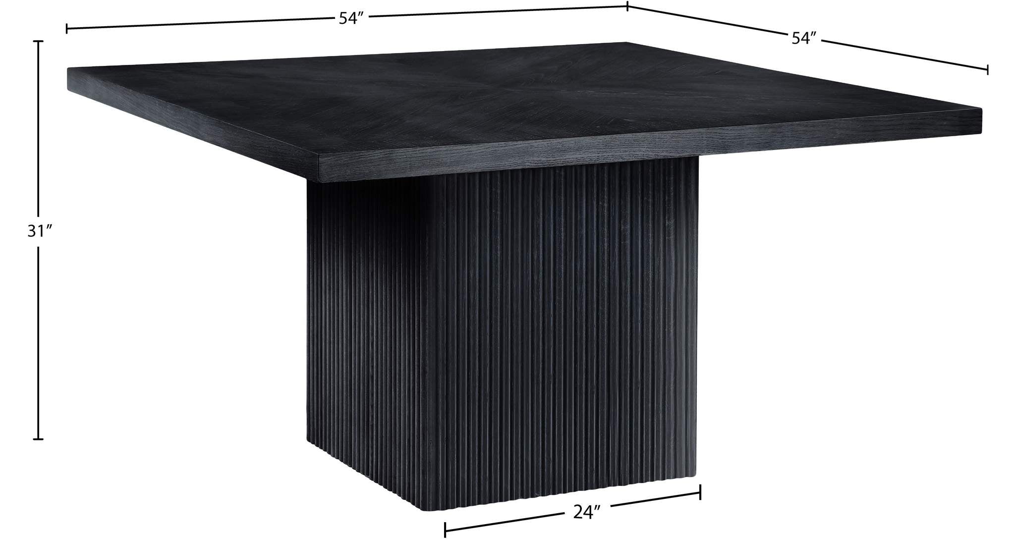 Give your dining room or eat-in kitchen a casual vibe with this Belinda dining table. A solid wood base and resilient construction offers impeccable durability and remarkable beauty. The square top rests on the fluted base, providing oodles of elbow room for family and friends to get comfortable while they nosh on their meal. The chair's made from wood and wood products for resilience, and its neutral black finish lets it mesh well with the dining chairs or stools of your choice.