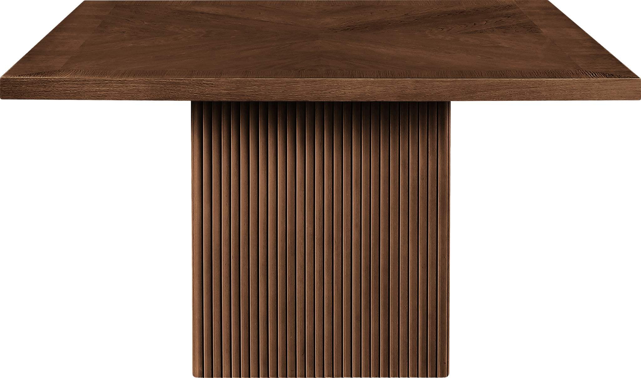 Give your dining room or eat-in kitchen a casual vibe with this Belinda dining table. A solid wood base and resilient construction offers impeccable durability and remarkable beauty. The square top rests on the fluted base, providing oodles of elbow room for family and friends to get comfortable while they nosh on their meal. The chair's made from wood and wood products for resilience, and its neutral Brown finish lets it mesh well with the dining chairs or stools of your choice.
