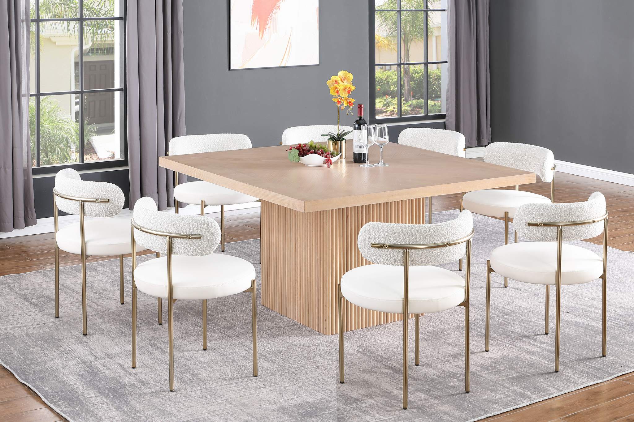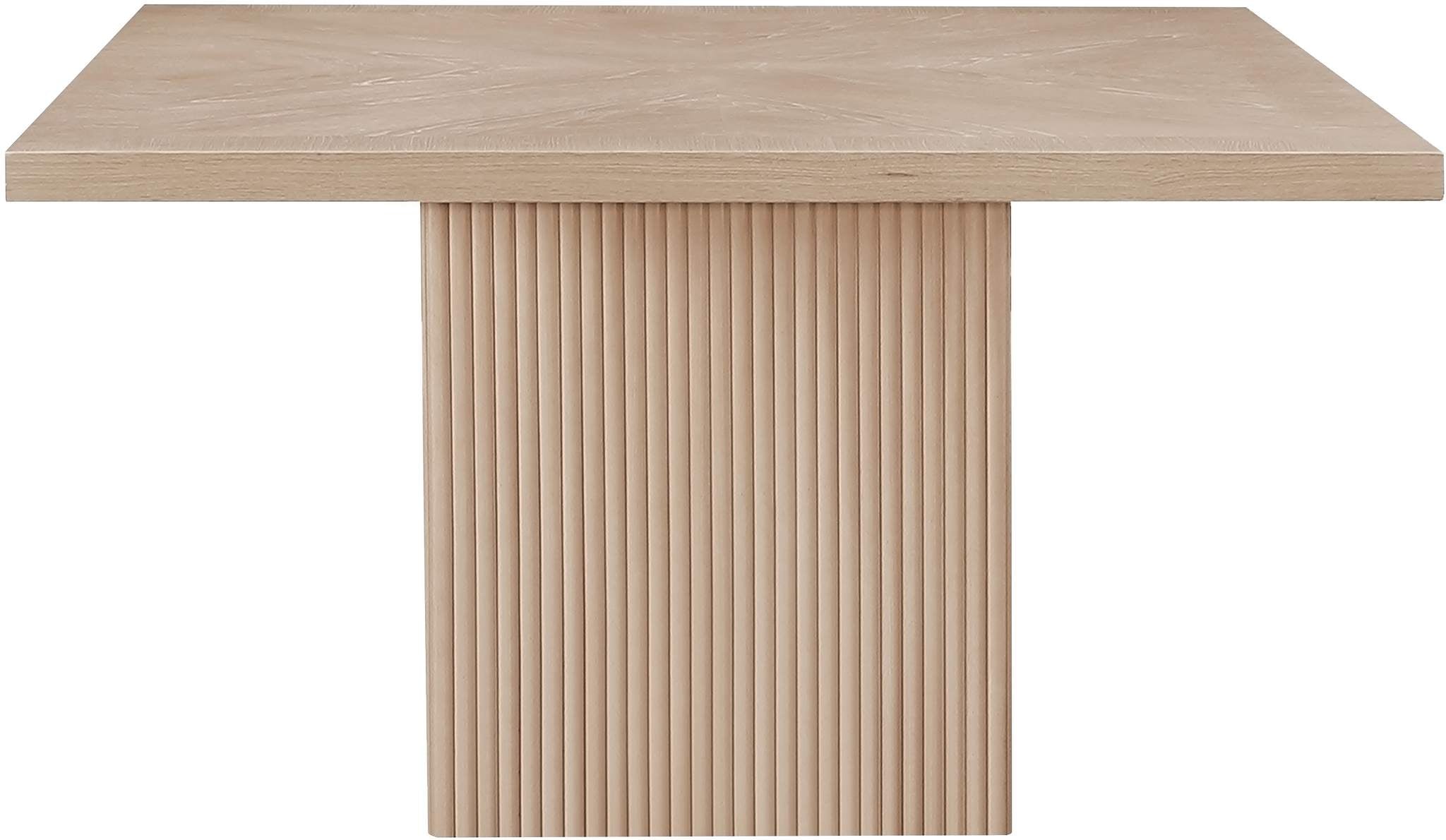 Give your dining room or eat-in kitchen a casual vibe with this Belinda dining table. A solid wood base and resilient construction offers impeccable durability and remarkable beauty. The square top rests on the fluted base, providing oodles of elbow room for family and friends to get comfortable while they nosh on their meal. The chair's made from wood and wood products for resilience, and its neutral natural finish lets it mesh well with the dining chairs or stools of your choice.