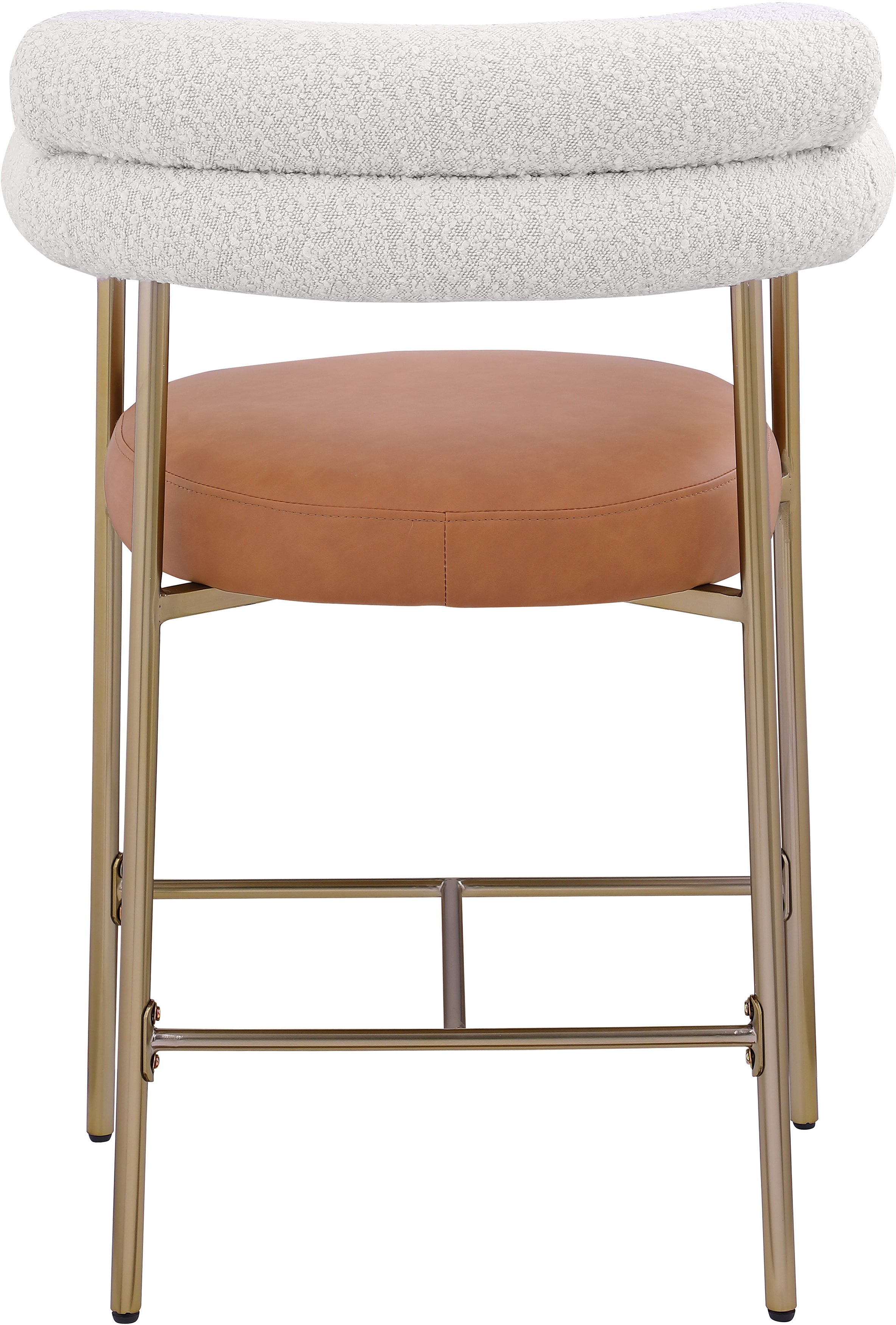 Blake Cognac Vegan Leather And Boucle Fabric Upholstered Counter Stool (Set of 2) | Meridian Furniture - 994Cognac-C